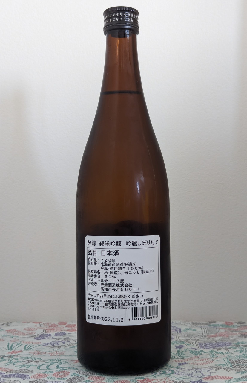 いつもの酒屋をパトロールしていると、高知の地酒「酔鯨 純米吟醸 吟麗 生酒」が並んでいたので、須崎産のカツオのたたきと合わせたくて購入しました。