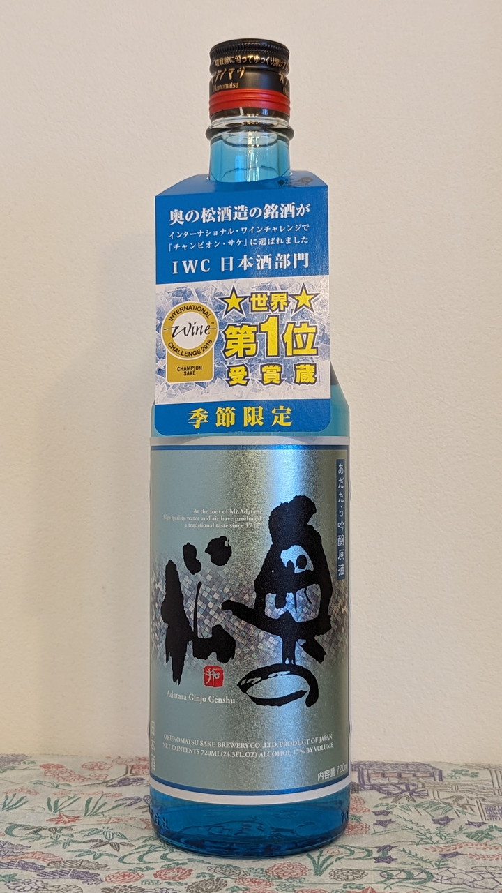 このお酒を化粧箱から取り出すまでIWC2018でチャンピオン・サケを通常商品の「あだたら吟醸」が受賞していたことを知りませんでした。