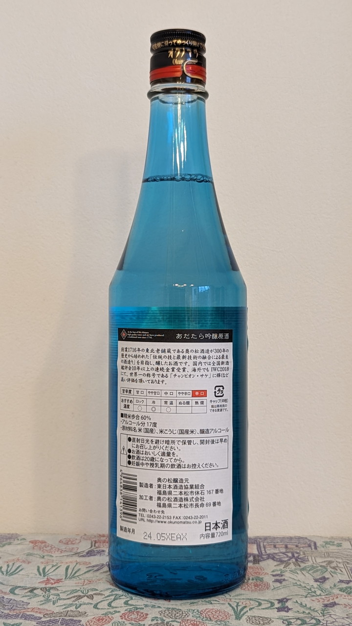日本酒「奥の松 あだたら吟醸原酒」