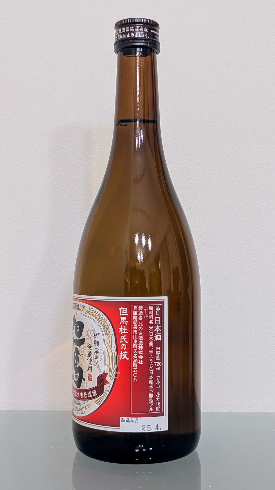 先日訪れた兵庫県朝来市にある「此の友酒造」で「但馬 但馬杜氏の技(赤ラベル)」を購入しました。