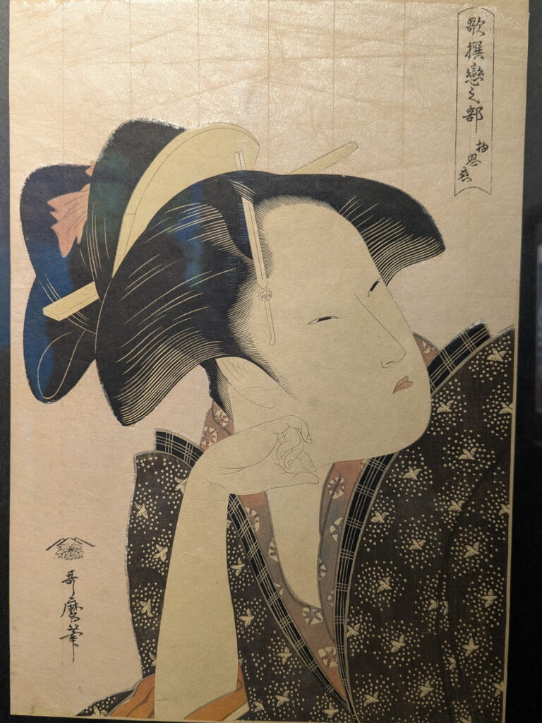 大河ドラマ「べらぼう」でも出てきましたね。左下の蔦屋の版元印と「歌麿」のサインがあります。