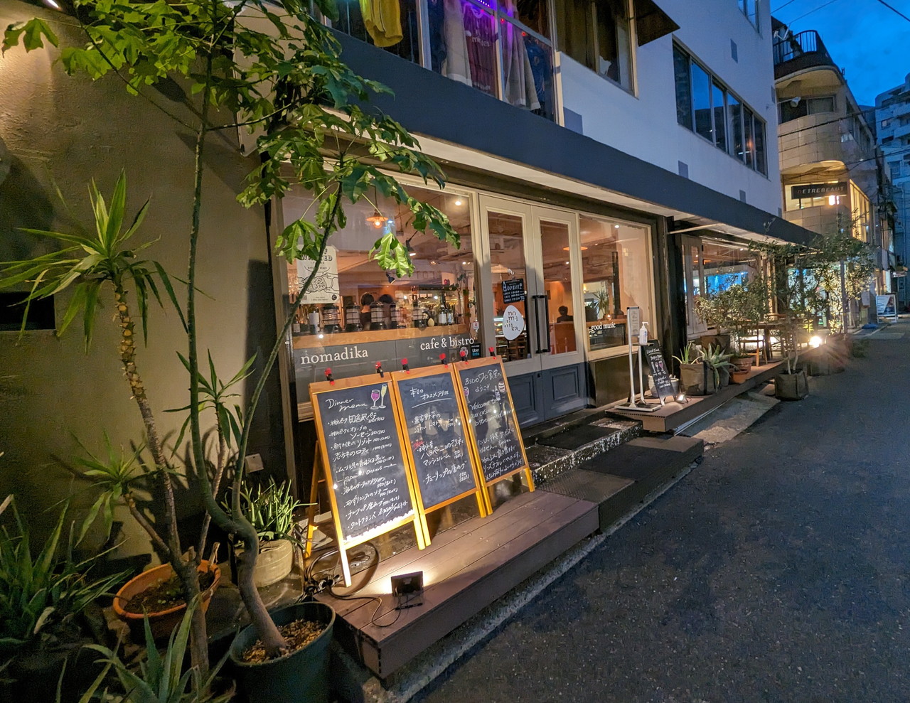 神戸サウナでサウナ&水風呂&外気浴を楽しんだあとは、元町にあるフレンチビストロ「nomadika(ノマディカ)」さんで晩ごはんです。