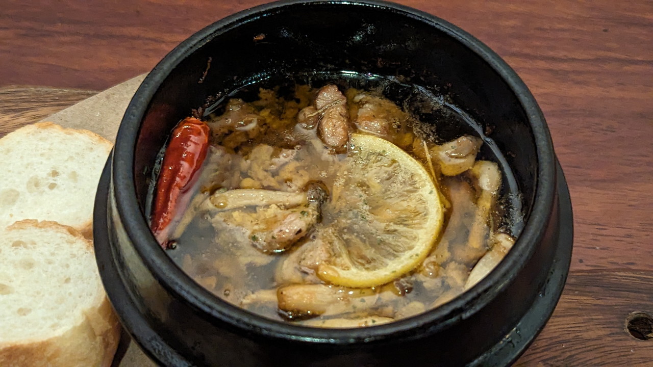 鶏のダシが出たオイルが結構美味しいのですが、オイルを楽しむにはバゲットが少なすぎですね(笑)