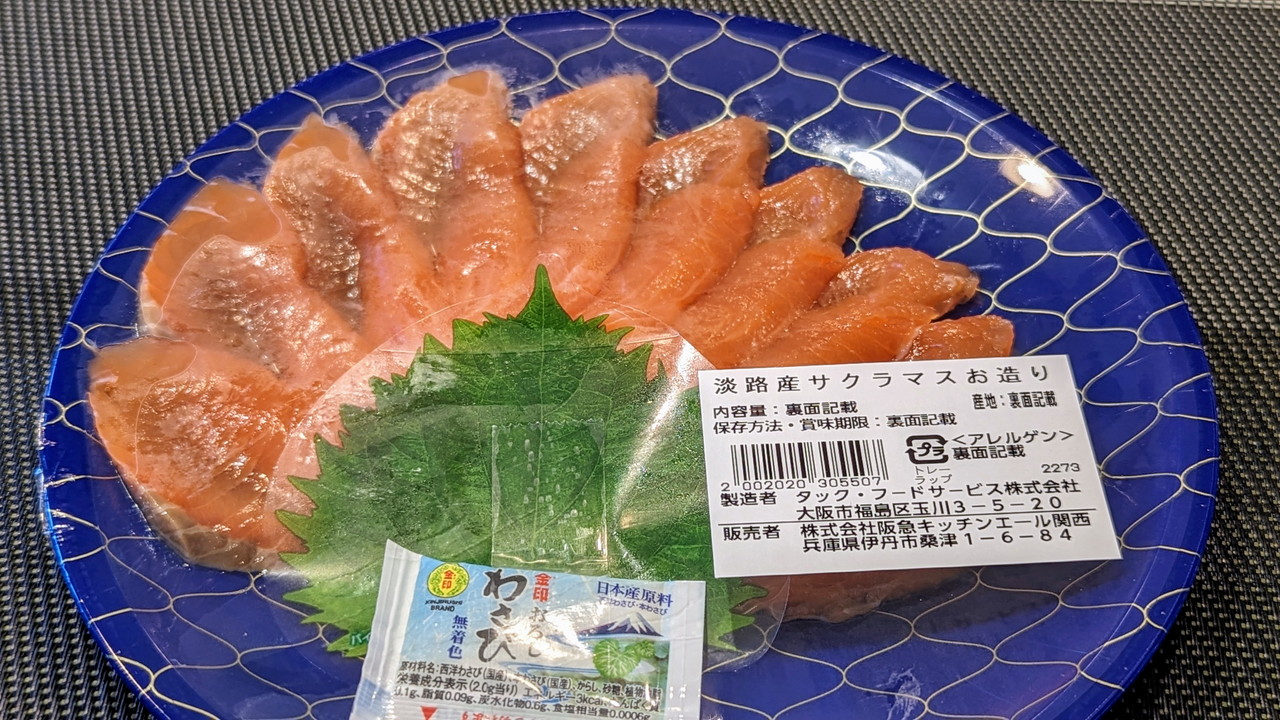 いつもお世話になっている阪急キッチンエールで地元兵庫の淡路島うまいもん特集が企画されていて、その中に最近ブランド化されてきた「サクラマスのお造り」があったので購入しました。