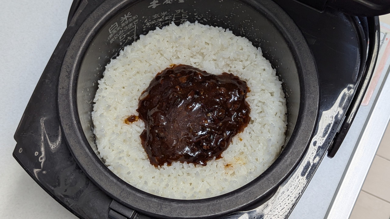 口に入れてみたところ、普通のご飯がもち米みたいな食感になっているのが、なんか不思議な感じです。