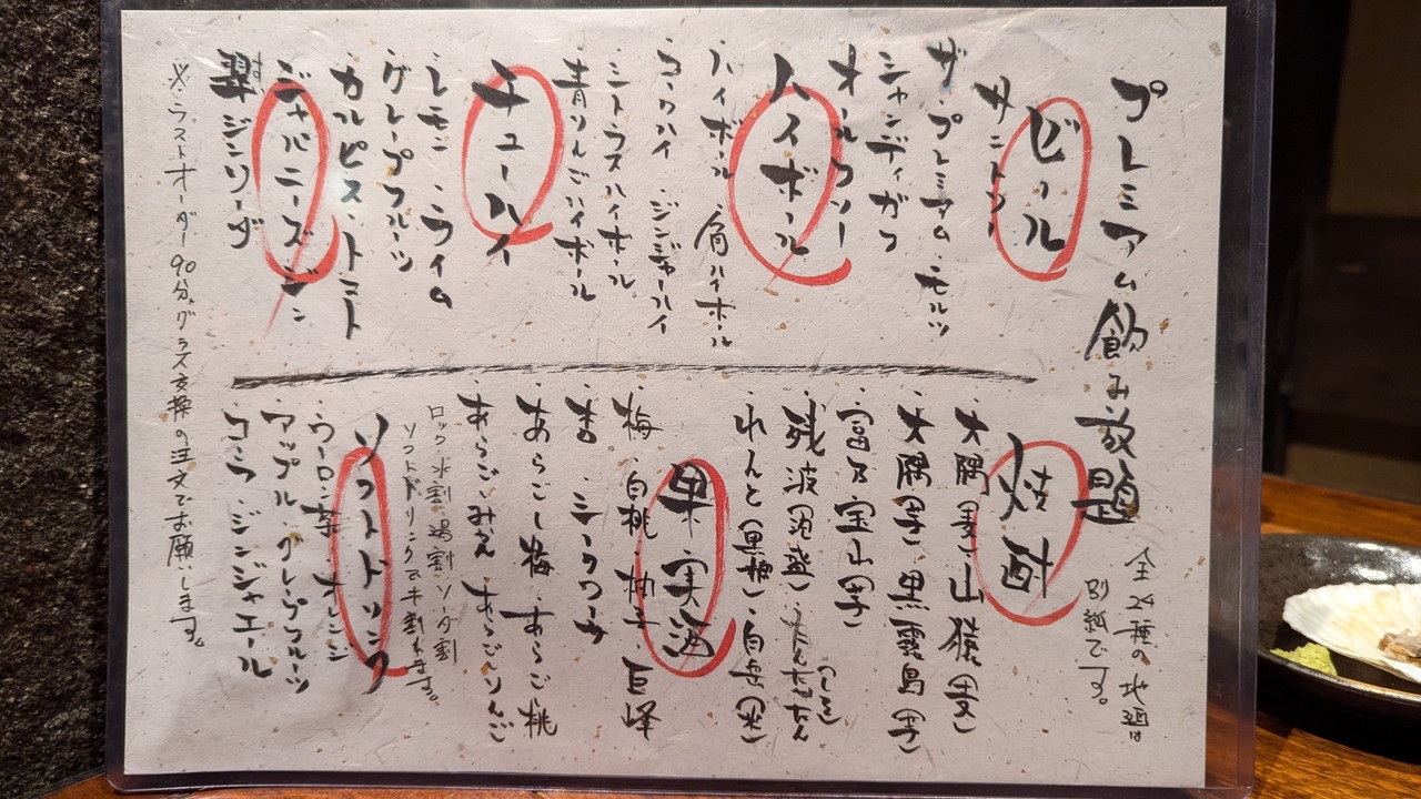 今日の1軒目は、プレミアム飲み放題の日本酒メニューがなかなか良い&料理もなかなか良くて、コスパがとっても良いと思っている「あかりど」さん。