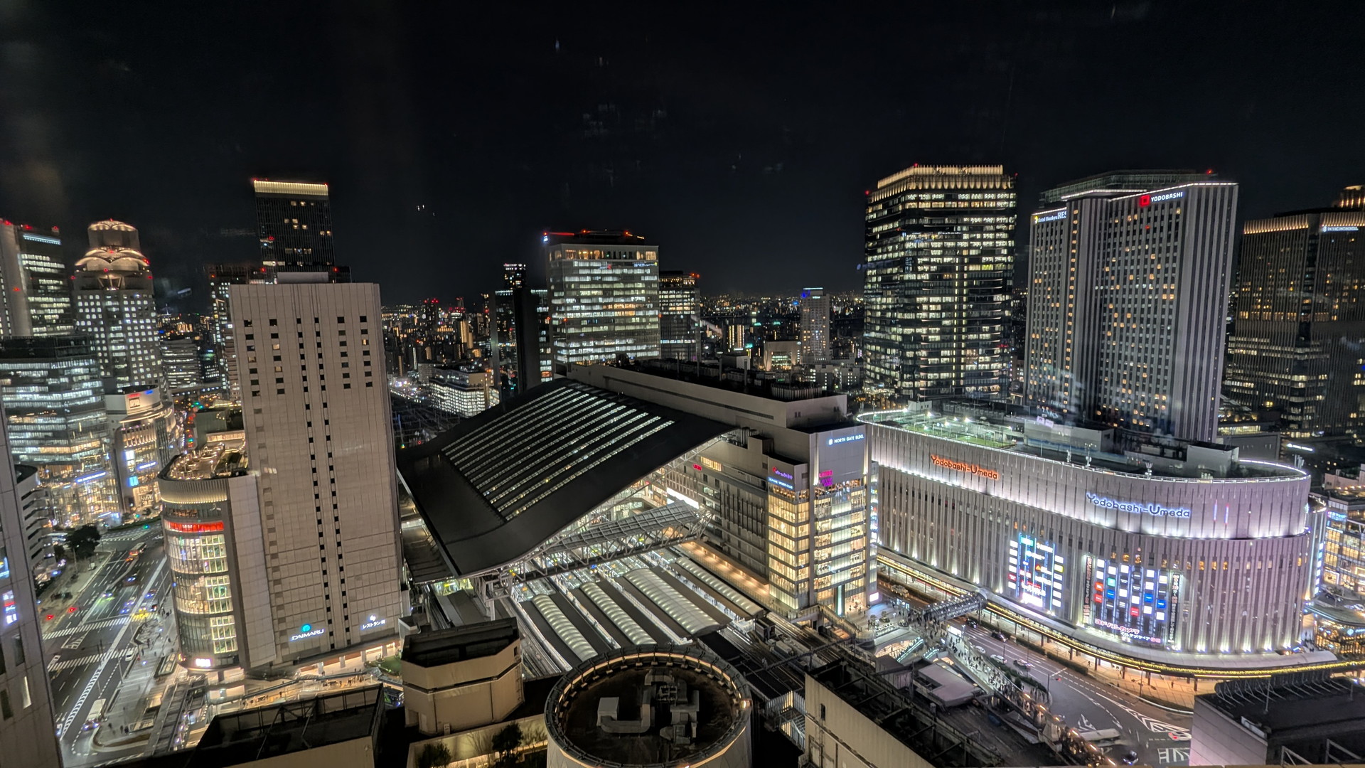 手前はJR大阪駅、遠くは尼崎の方まで見えています。