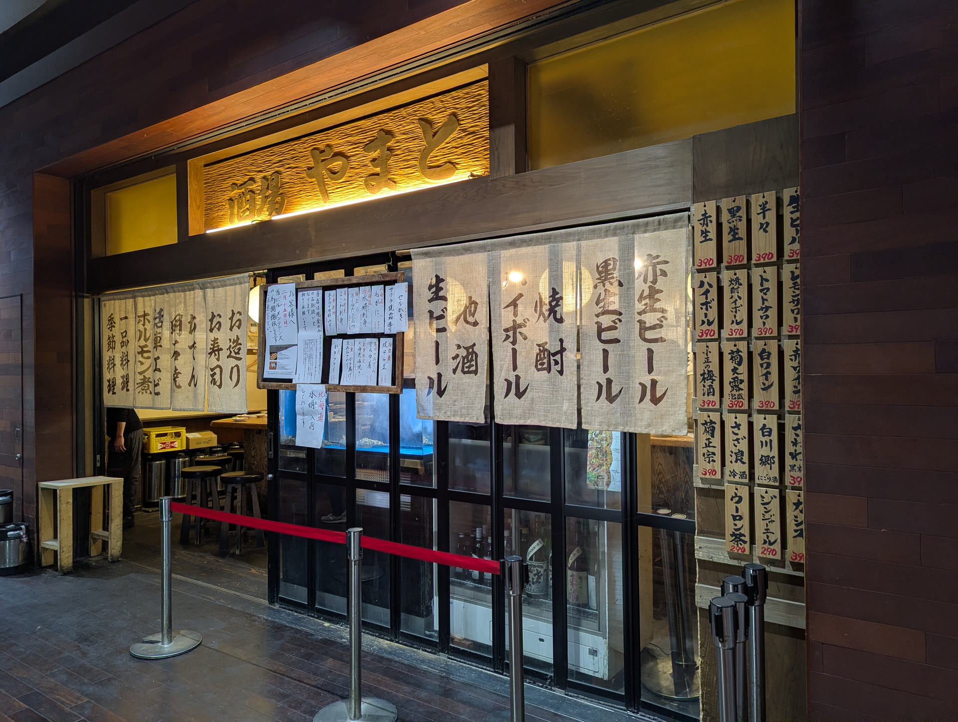 「酒場やまと」は、大阪駅のすぐ近くにある大阪富国生命ビル地下の飲食街に店を構える人気の大衆酒場です。梅田の中心という好立地にありながら、肩肘張らずに楽しめる気取らない雰囲気が魅力です。また、こんな場所ながら午前11時からオープンしてるのが大衆酒場らしくていいですね。