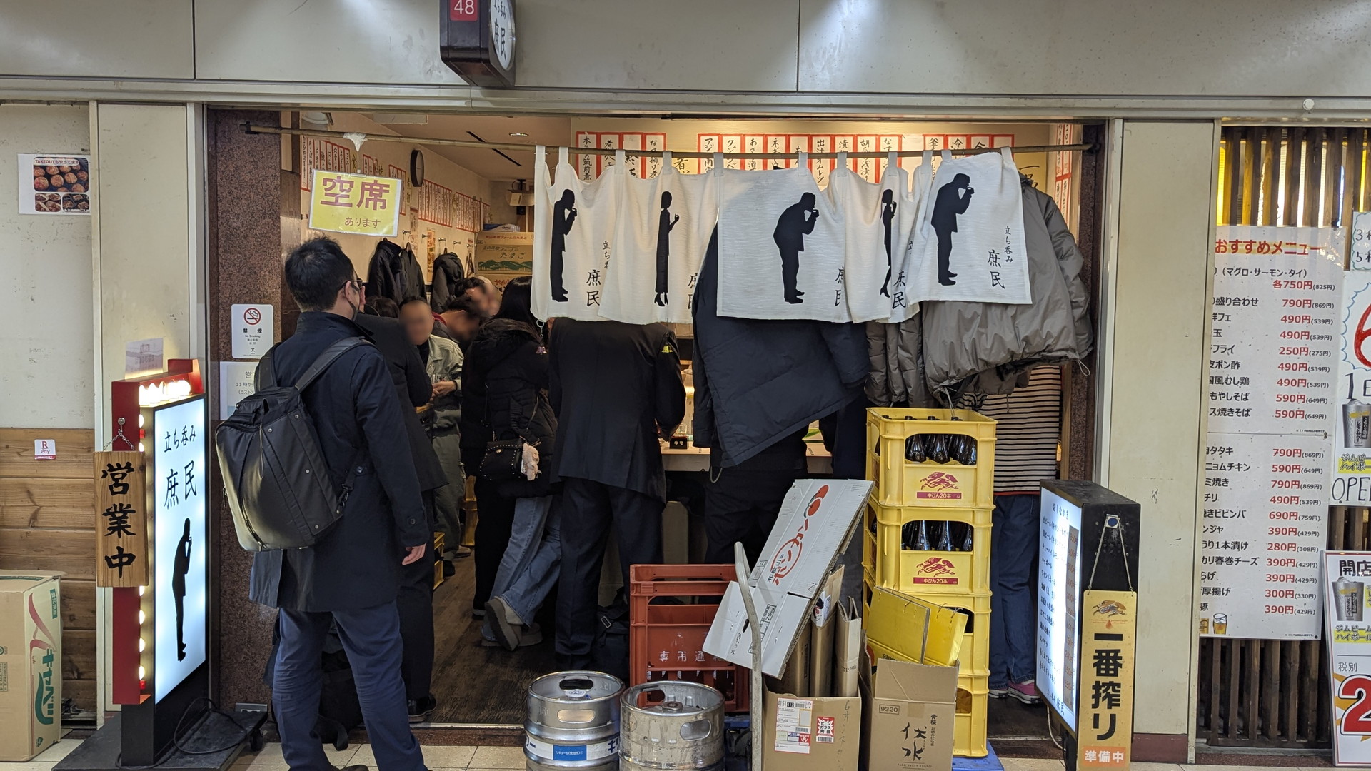 今日の飲み会2軒目は、楽しい飲み屋がたくさん入っている大阪駅前ビル地下街にある「立ち呑み 庶民 大阪駅前第4ビル店」です。