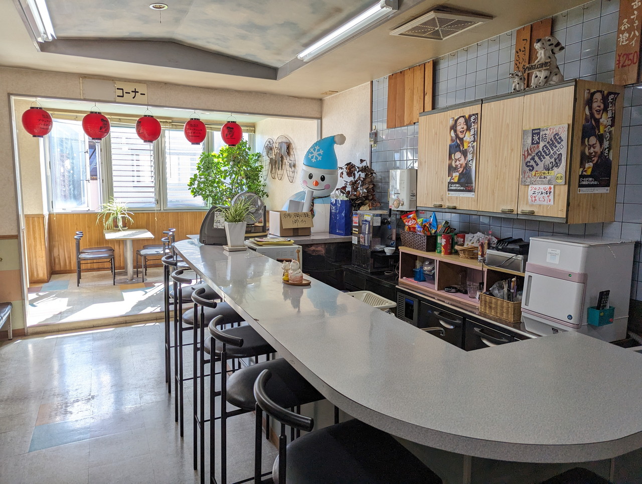 フロント左側にカウンターがあって、ここで風呂上りのビールが飲めます。