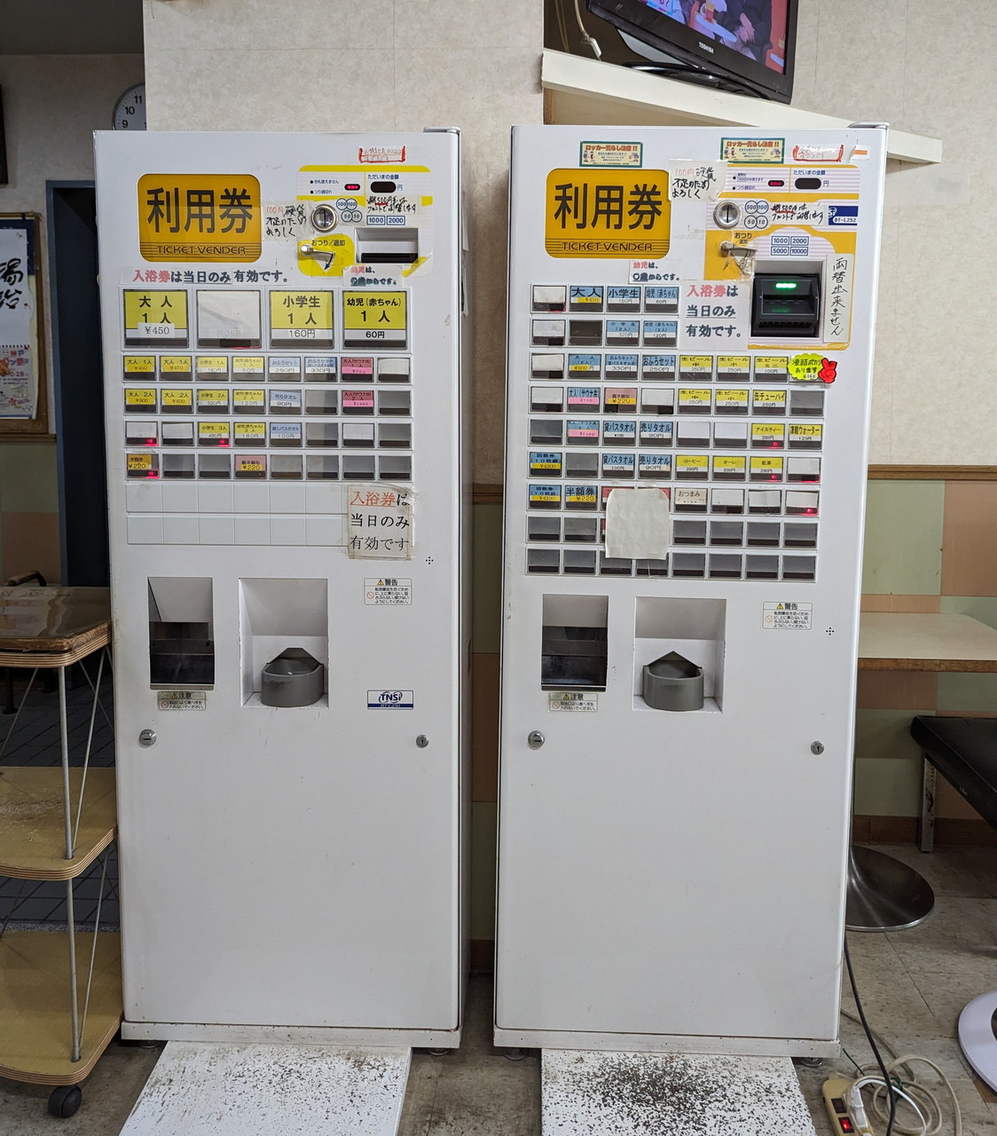券売機は入り口入って左側にあります。お支払いは現金のみでした。