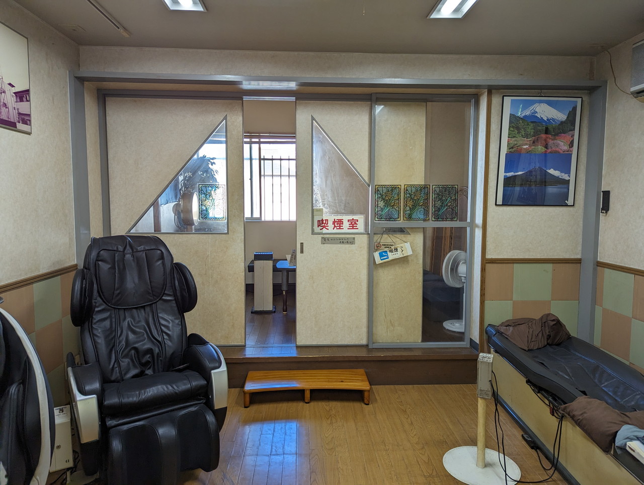 休憩スペースの奥に喫煙室あります。