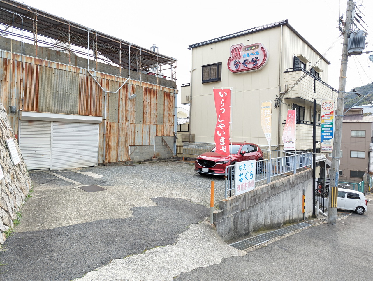駐車場は、この写真に写っている施設の隣にあるエリアに4台停めることができるのと