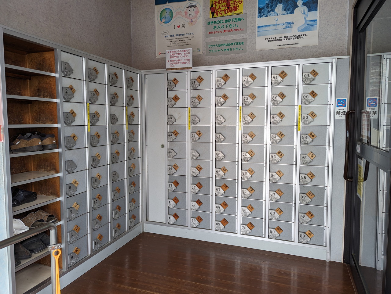 入浴券とげた箱の木札を渡して、バスタオルとサ室の鍵を受け取ります。