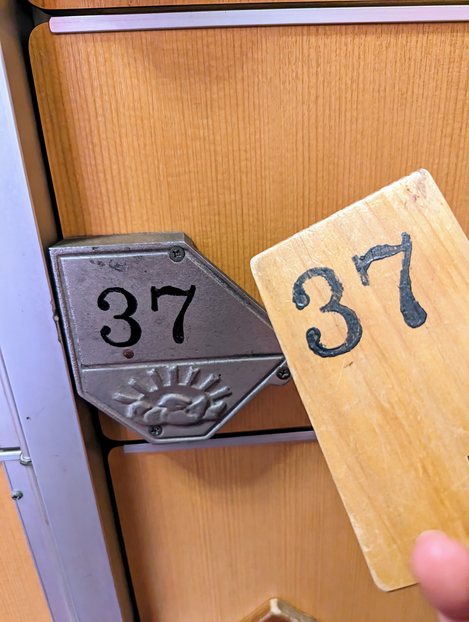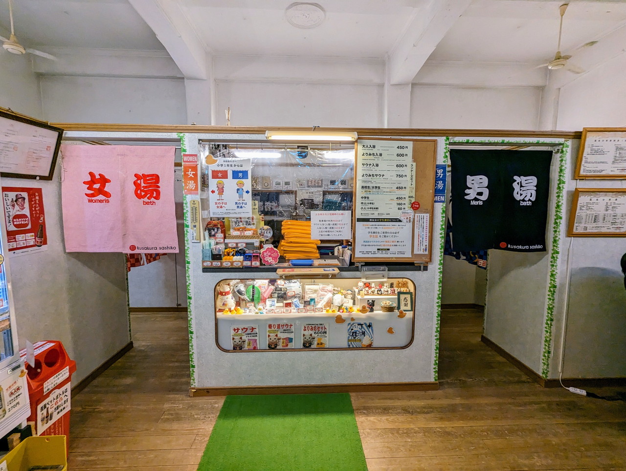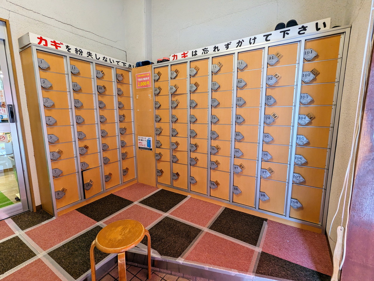こちらのサ室には鍵がついていないので、フロントで渡されるバスタオルと赤色のサウナ札を身につけて入ります。従業員のおばちゃんが時々気分が悪くなっている人がいないかチェックに来るついでに、不正利用していないかしっかりチェックされていますので、おばちゃんから見えやすいようにサウナ札を身に着けておいておくとよいかもです。