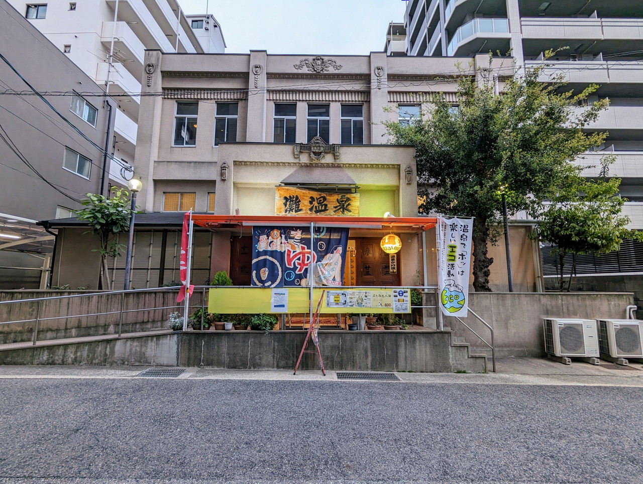 こちらの施設はJR神戸線六甲道駅から徒歩5分ほど、街のど真ん中で高層マンションに囲まれた中にぽつんと残された昭和から続く銭湯ですが、お湯は六甲の天然水&天然温泉&源泉かけ流しが楽しめる貴重な存在です。