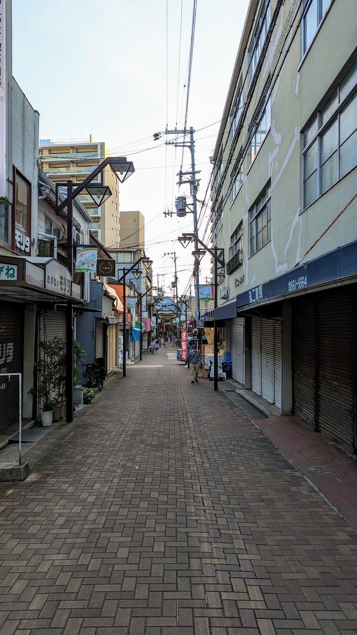 水道筋商店街は阪急神戸線 王子公園駅の東側あたりから、灘温泉あたりまで東西方向に伸びた商店街で、アーケードの長さが約450mくらいあるそうで、かなり規模の大きな商店街になります。