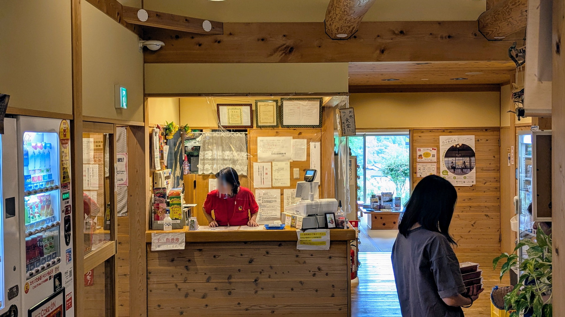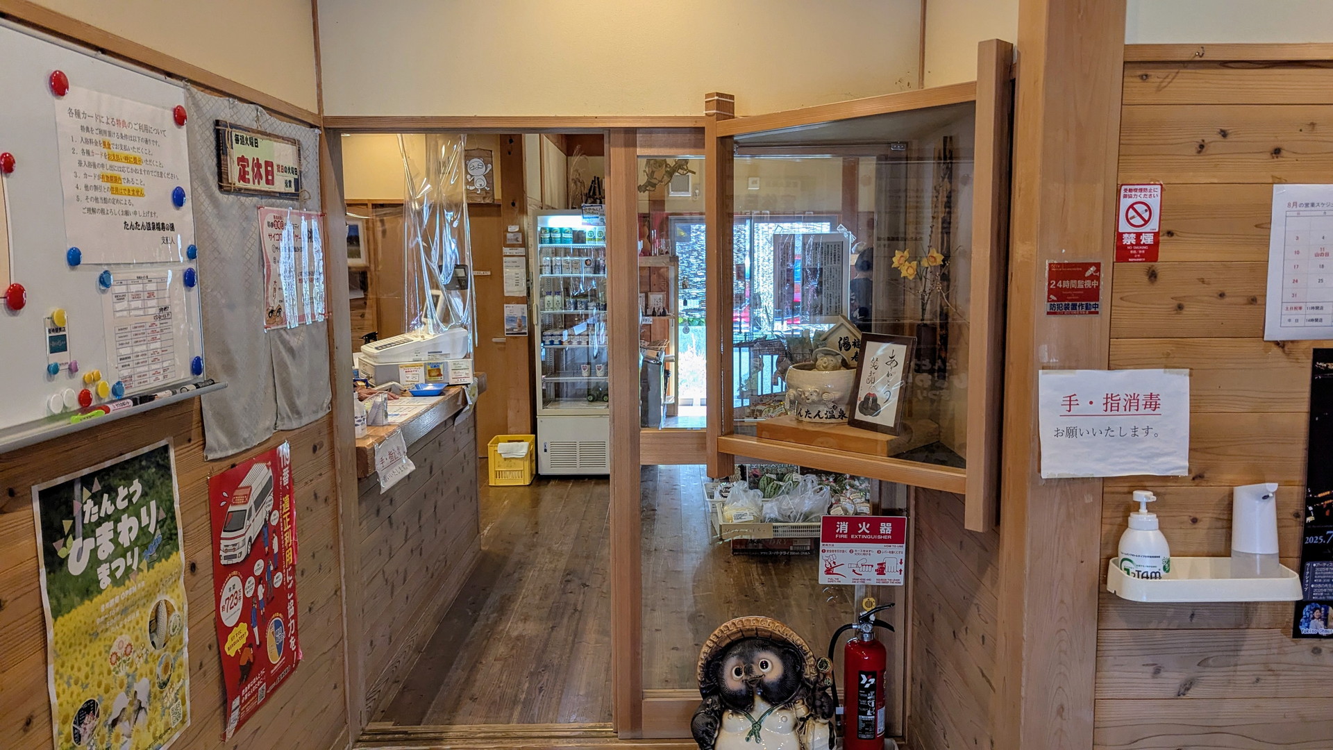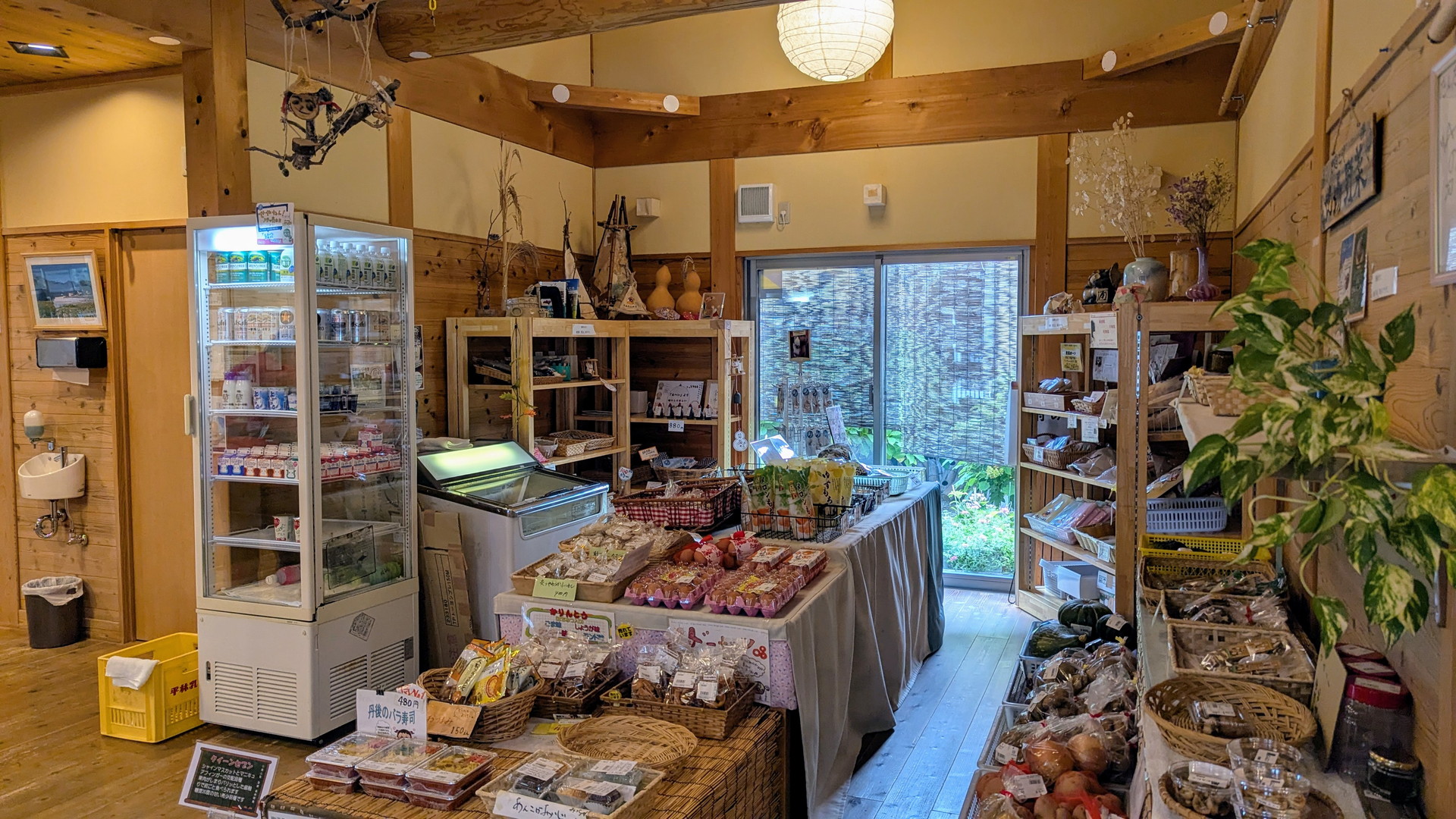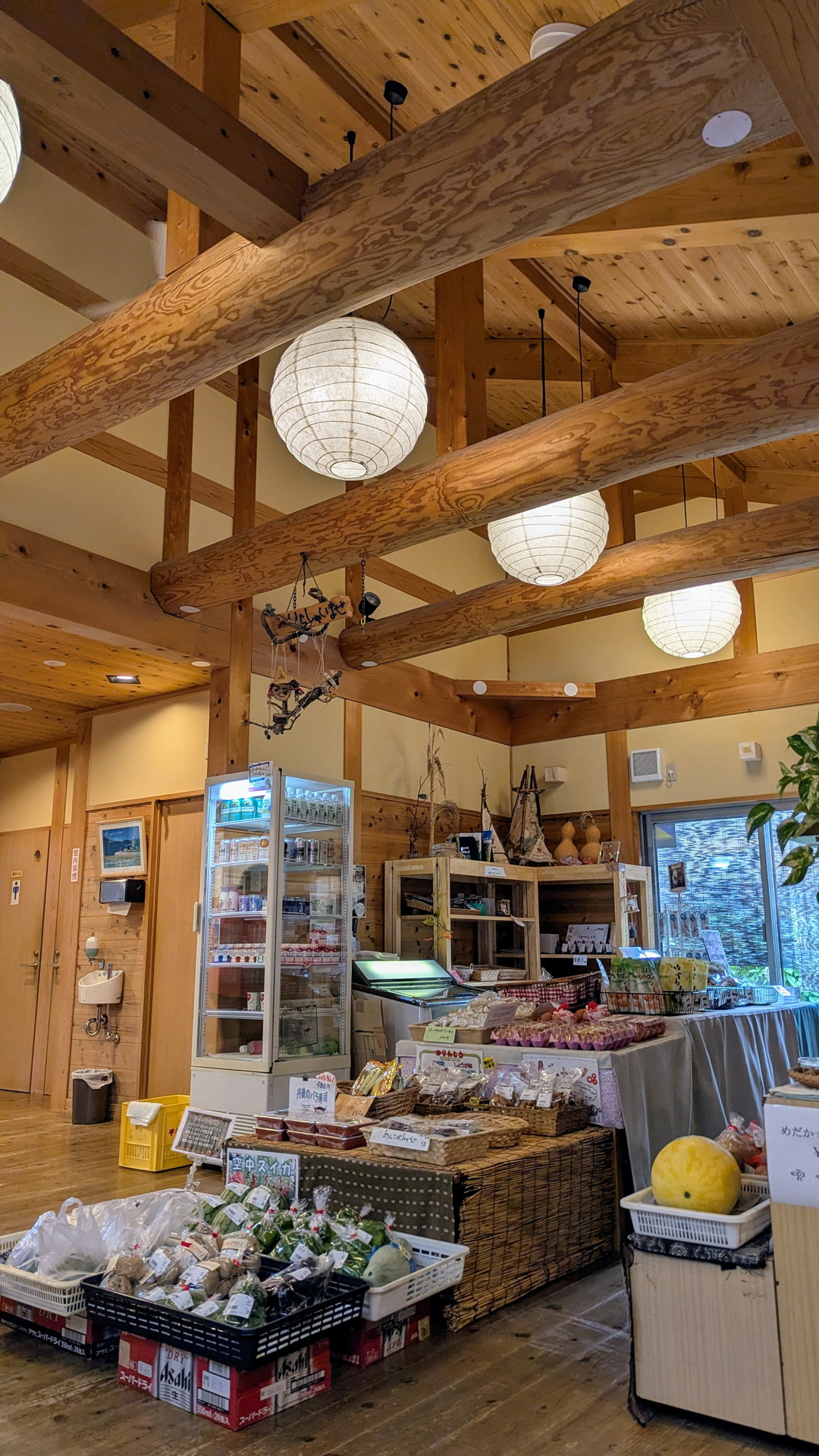 フロントの前には売店があって、地元の特産品、野菜やお弁当などが売られています。