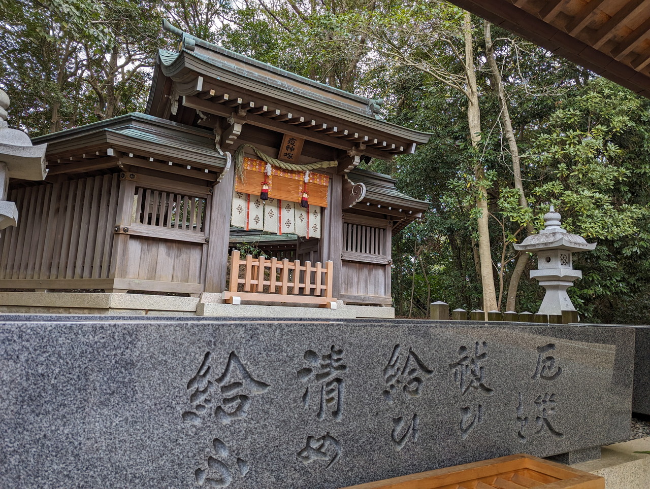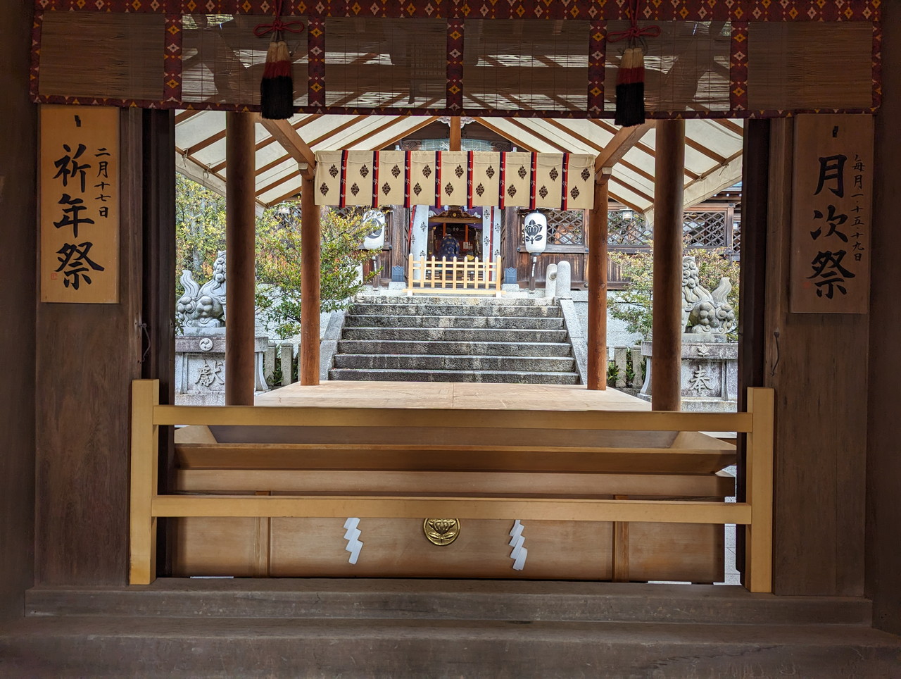 拝殿の屋根が少し見えてきました。