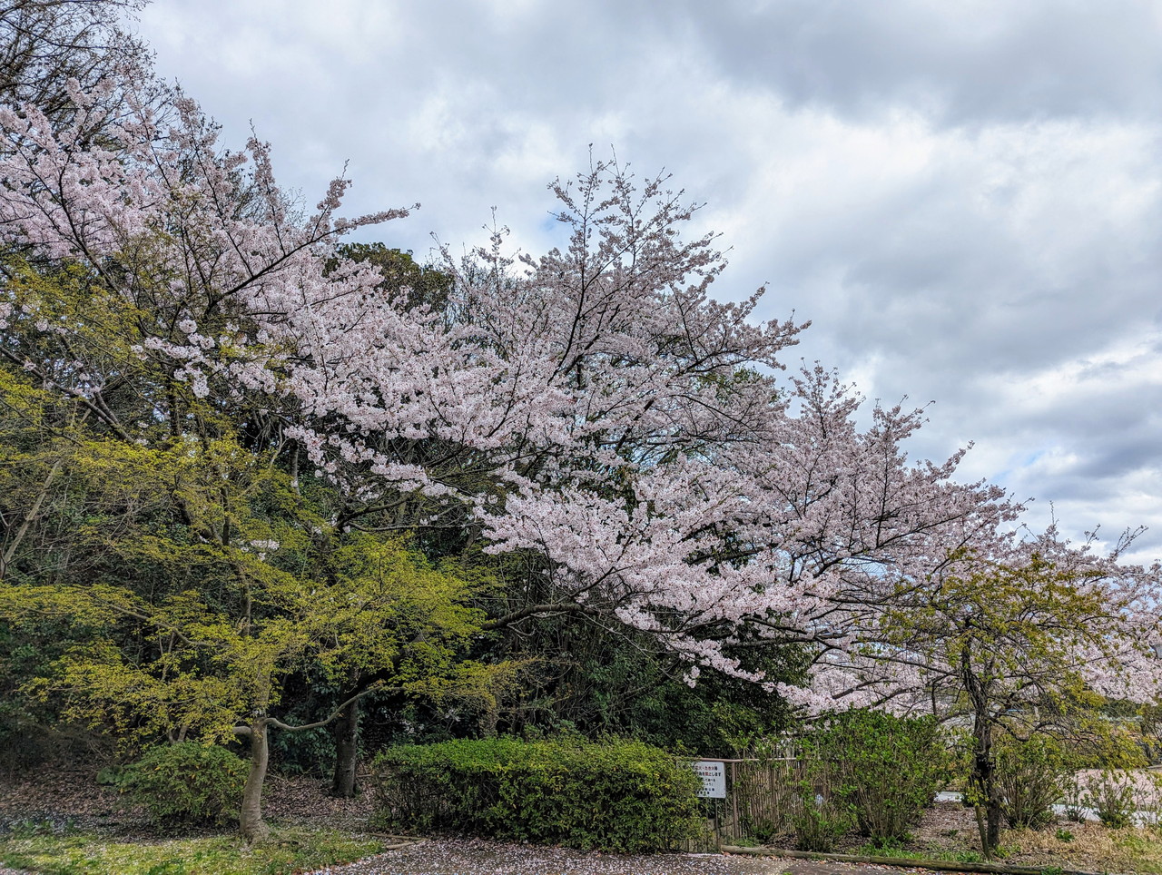 立派な桜の木が日陰を作っています。