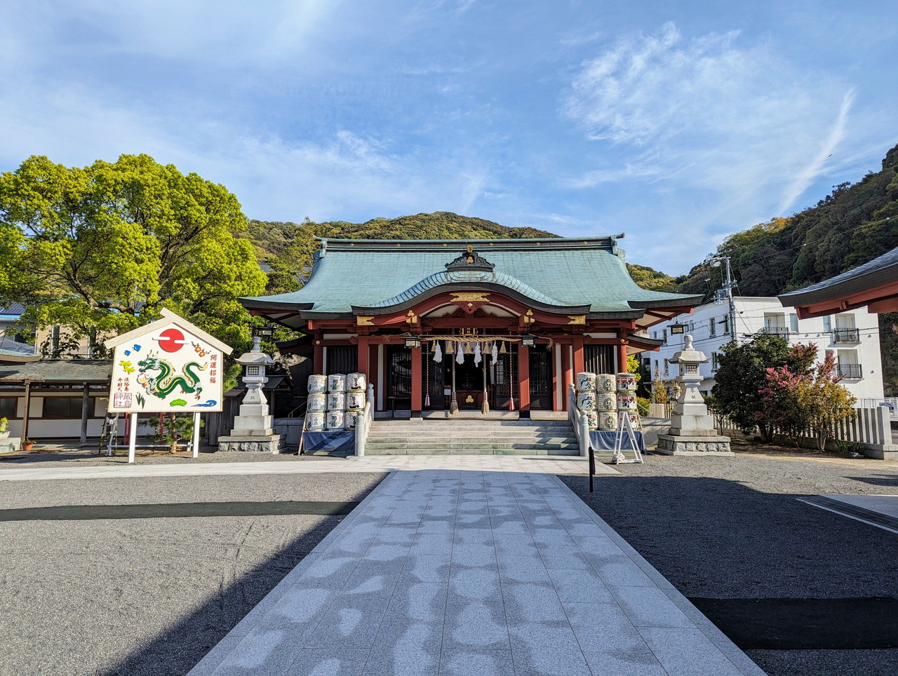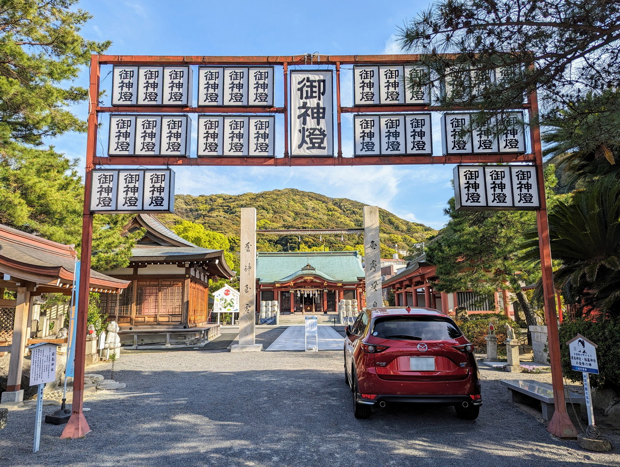 先ほどの本福寺から車で40分ほど、洲本市市街にある厳島神社に到着しました。