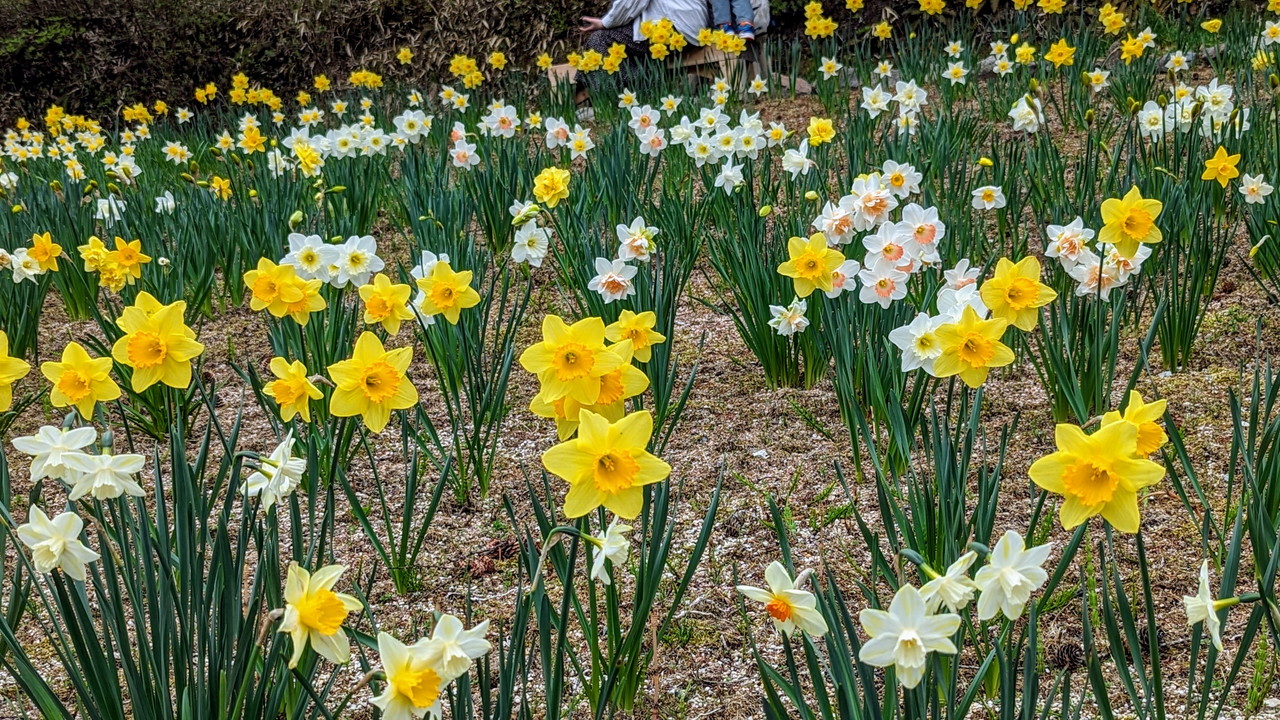 ということで自宅からは車で三田市街を抜けて向かいますが、花のじゅうたんに近づいてくると道がめっちゃ細くなるところが何か所かあって対向するのに譲り合いする必要もあり、ヒィヒィ言いながらやっと施設に到着しました。