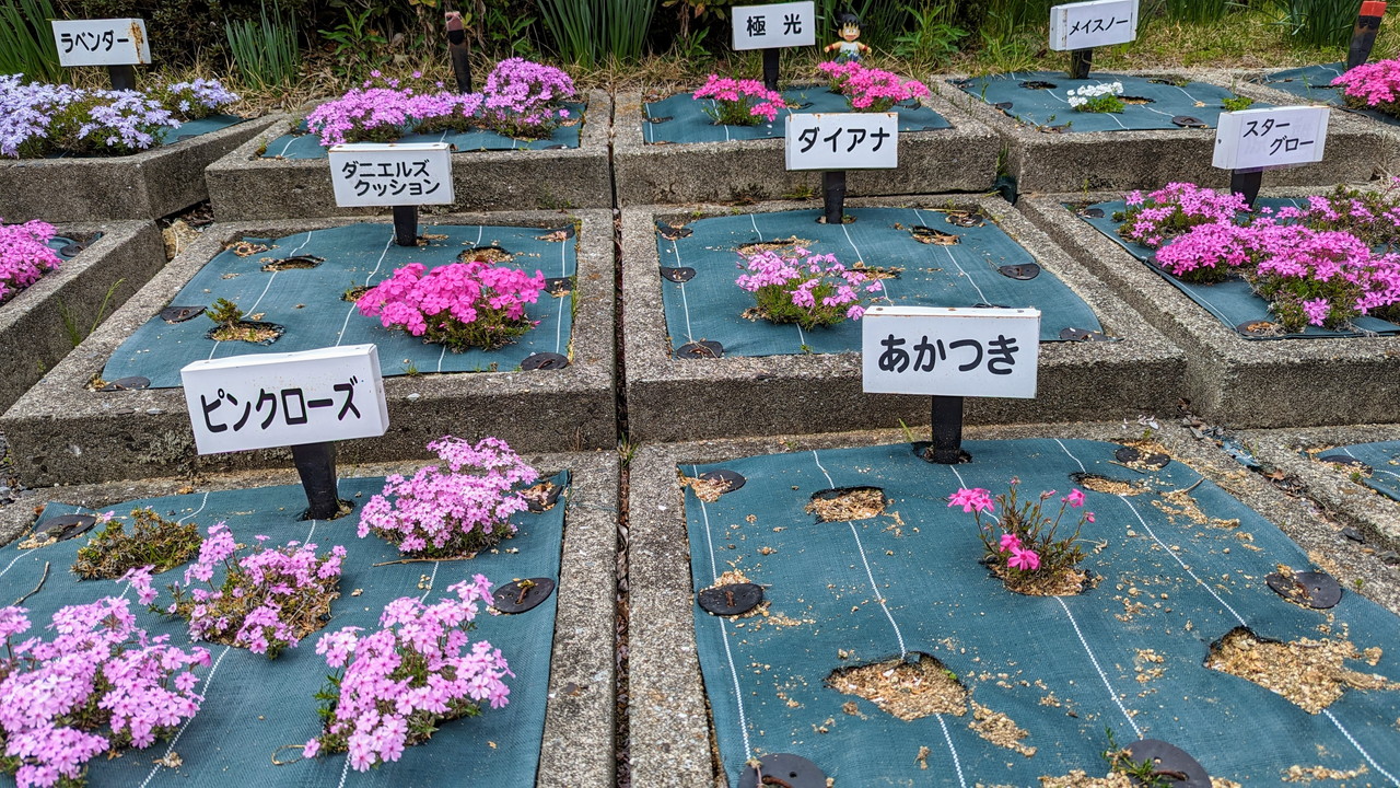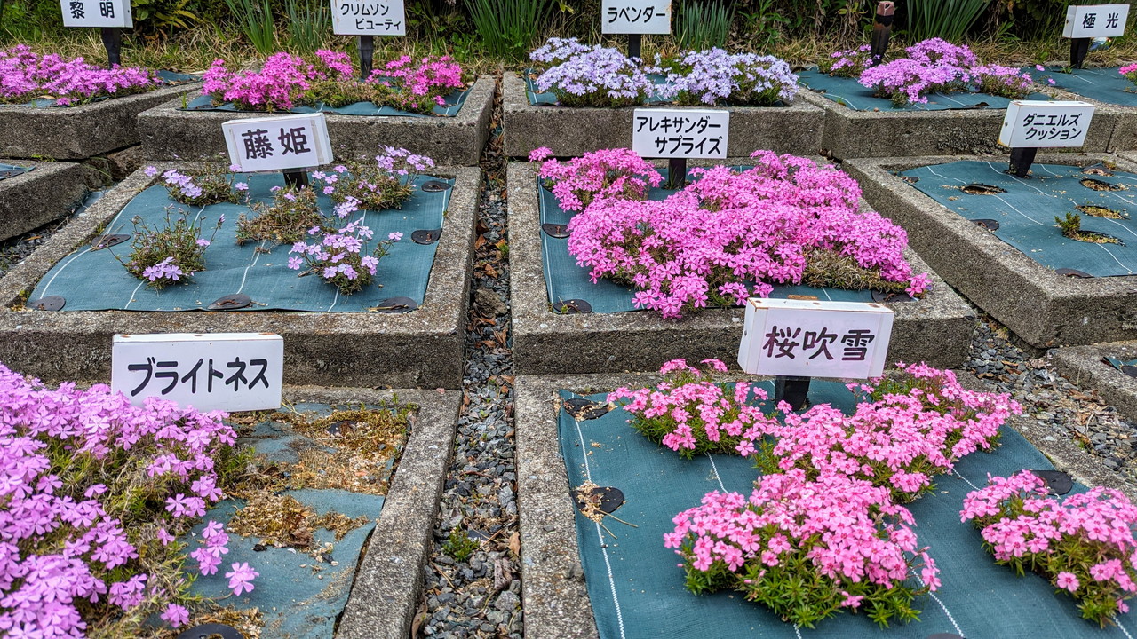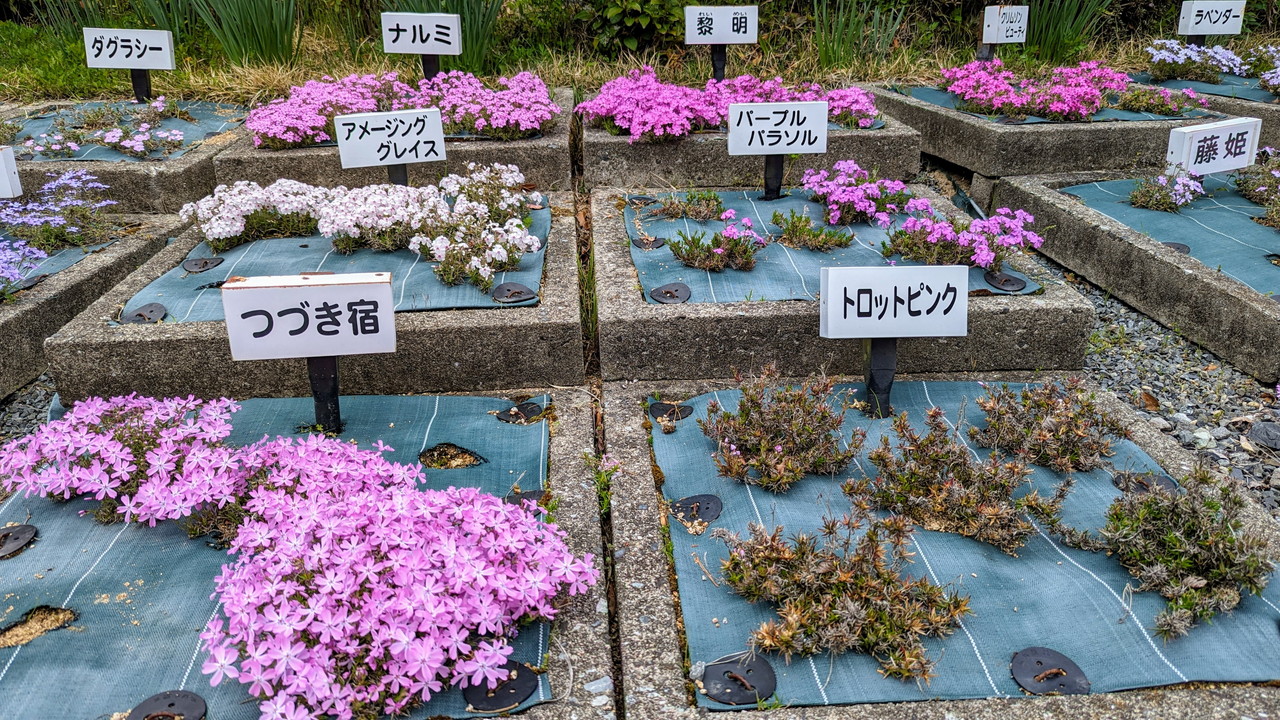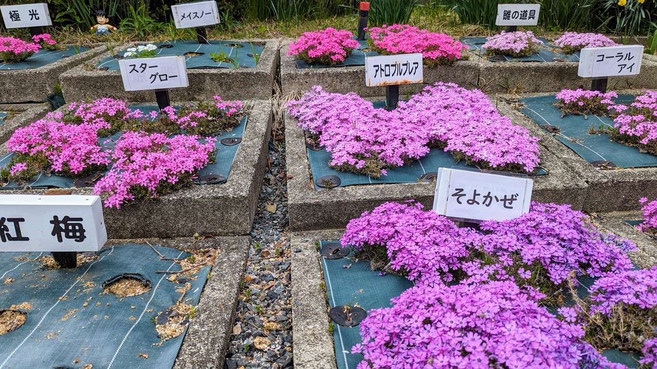 こちらでは名札付きで芝桜の品種を紹介していました。