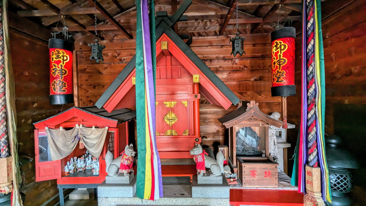 方除の神 猿田彦神と、芸能の神 天宇受賣神(あめのうずめのかみ)が祀られています。