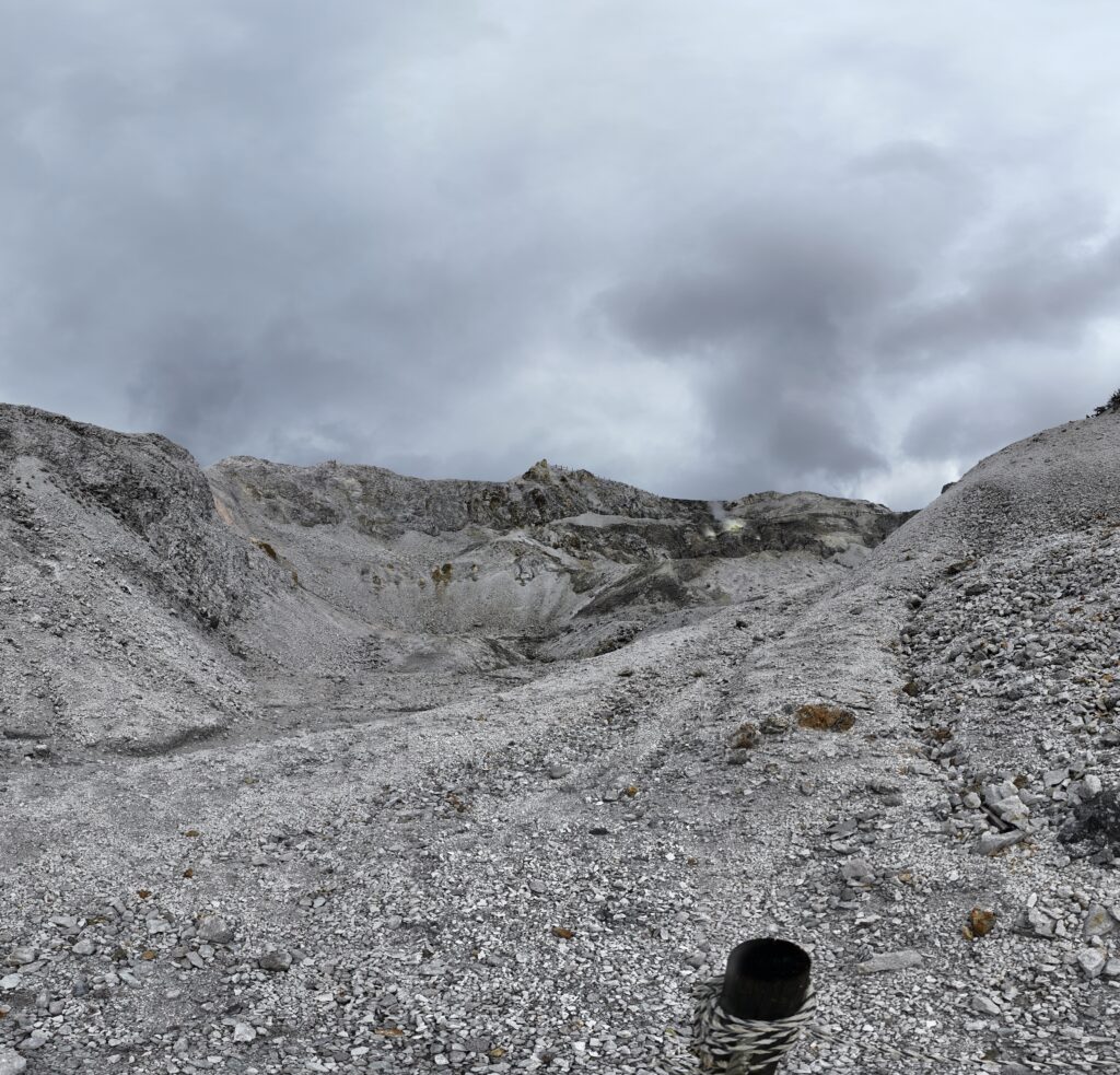 遠くに硫黄ガスが噴き出しているところが見えます。
