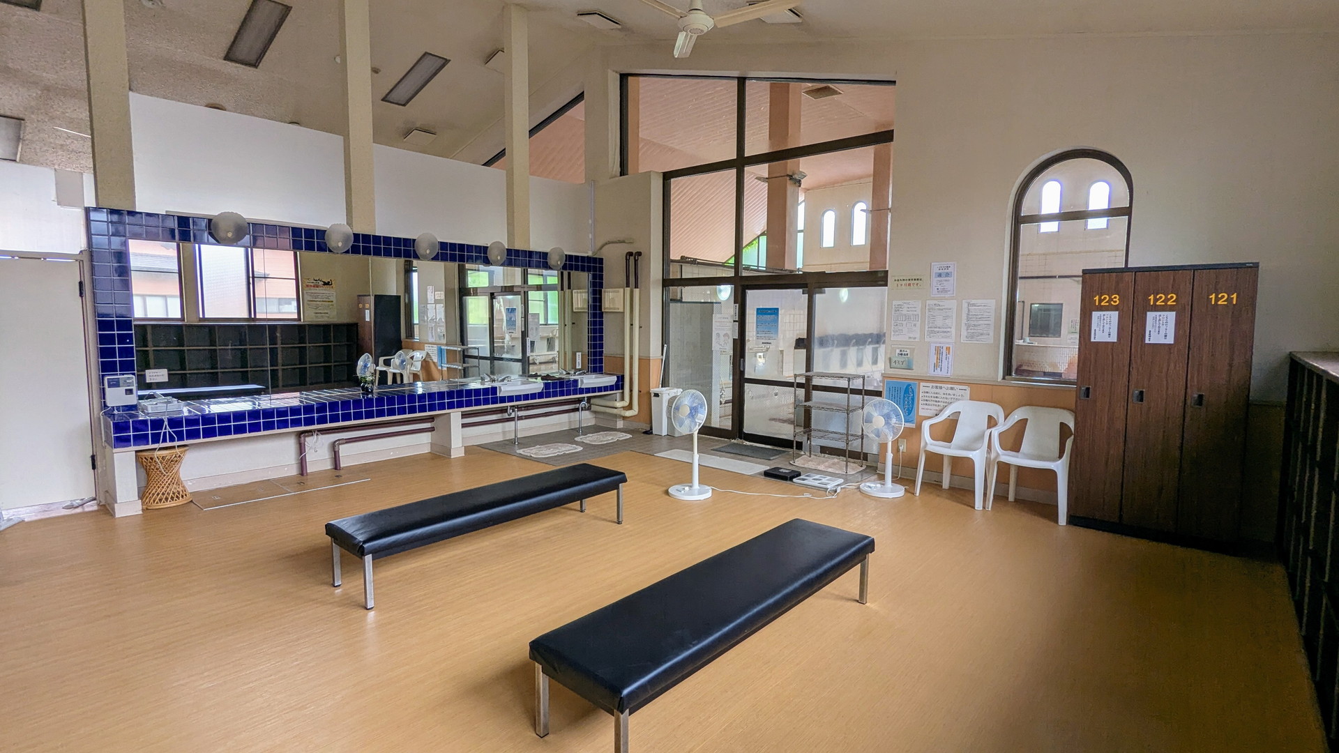 脱衣所に鍵付きロッカーがあるのですが、それを使用したい場合はフロント横に「靴」を預けます。