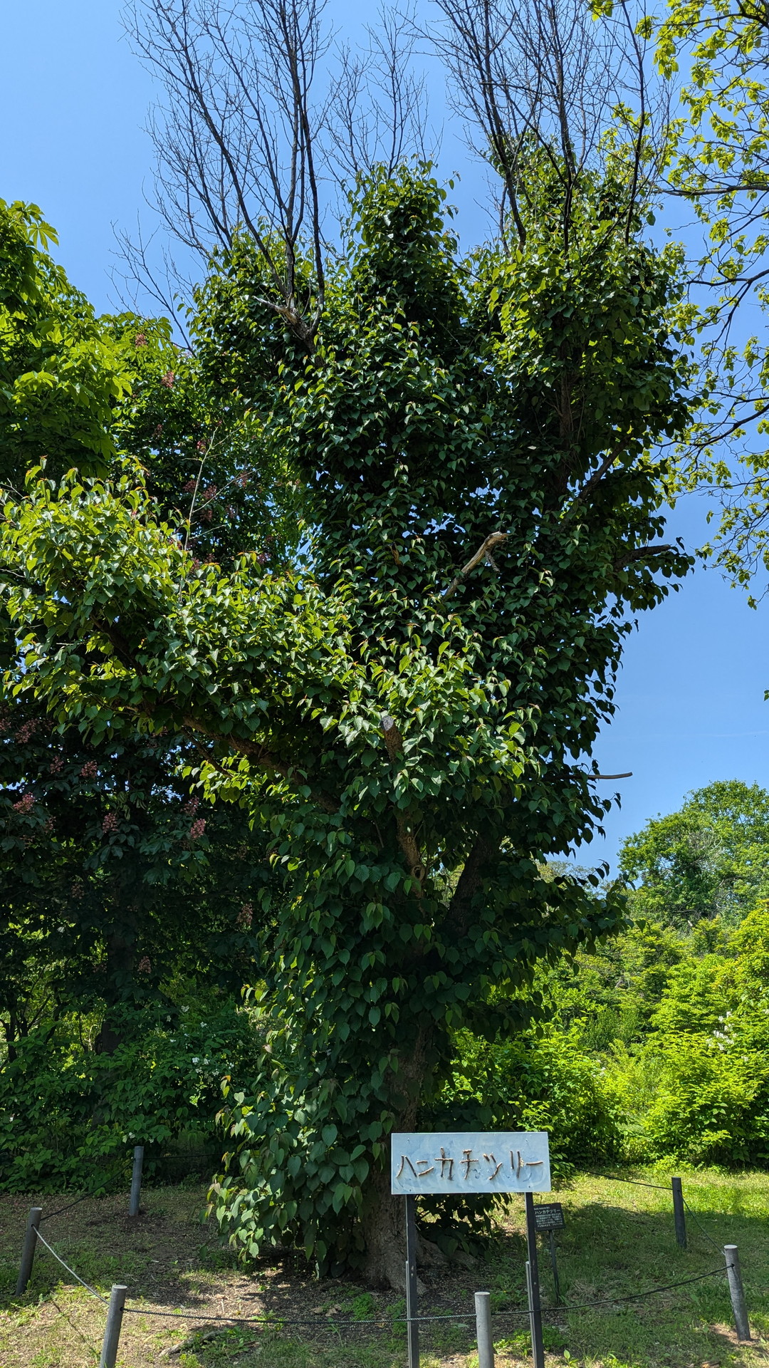 何がハンカチなのかと思ったら、花についた白い大きな2枚の苞葉が垂れ下がりよく目立つためハンカチの木と言われているそうで、花が咲いていない今は何のことかわからないですね。