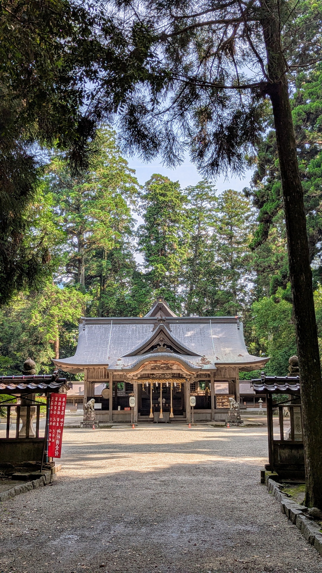 参道の両脇には背の高い木々が生い茂っています。さすが歴史のある神社ですね。