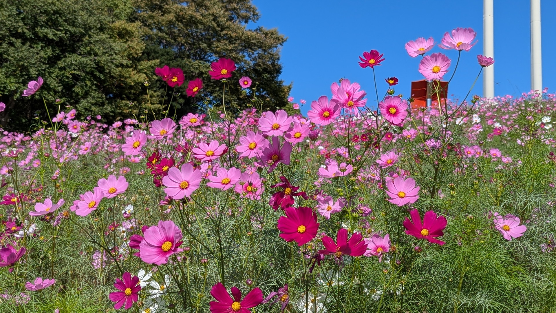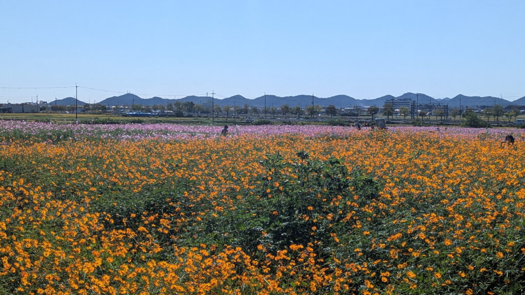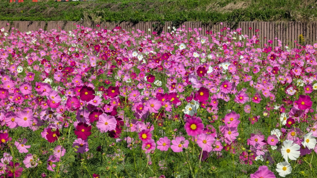 こちらがひまわりの丘公園で咲いていたコスモスたち。