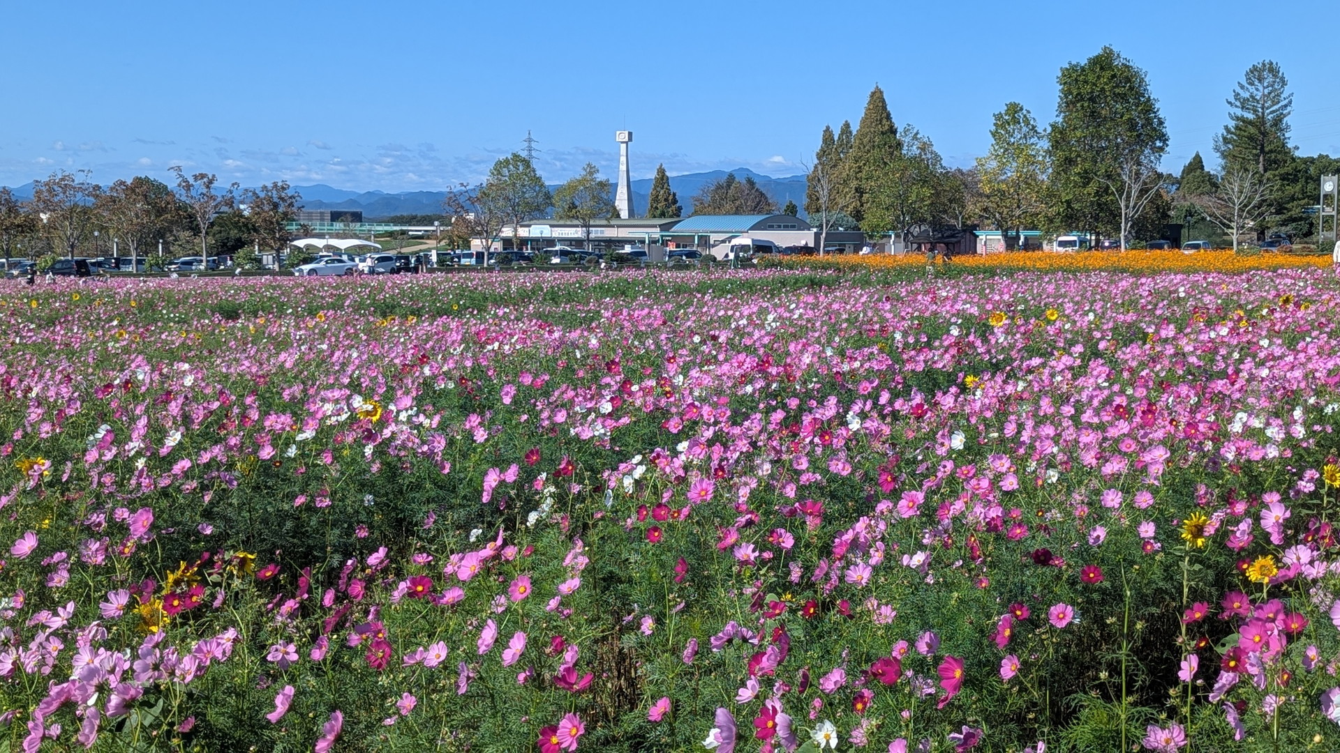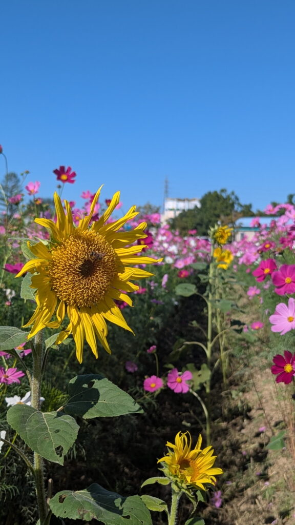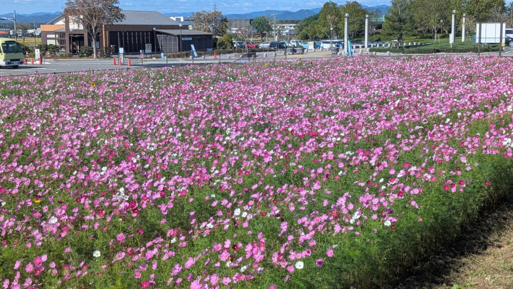 また、春は「菜の花」、秋は「コスモス」と、季節ごとに異なる花が楽しめる花畑が広がっています。