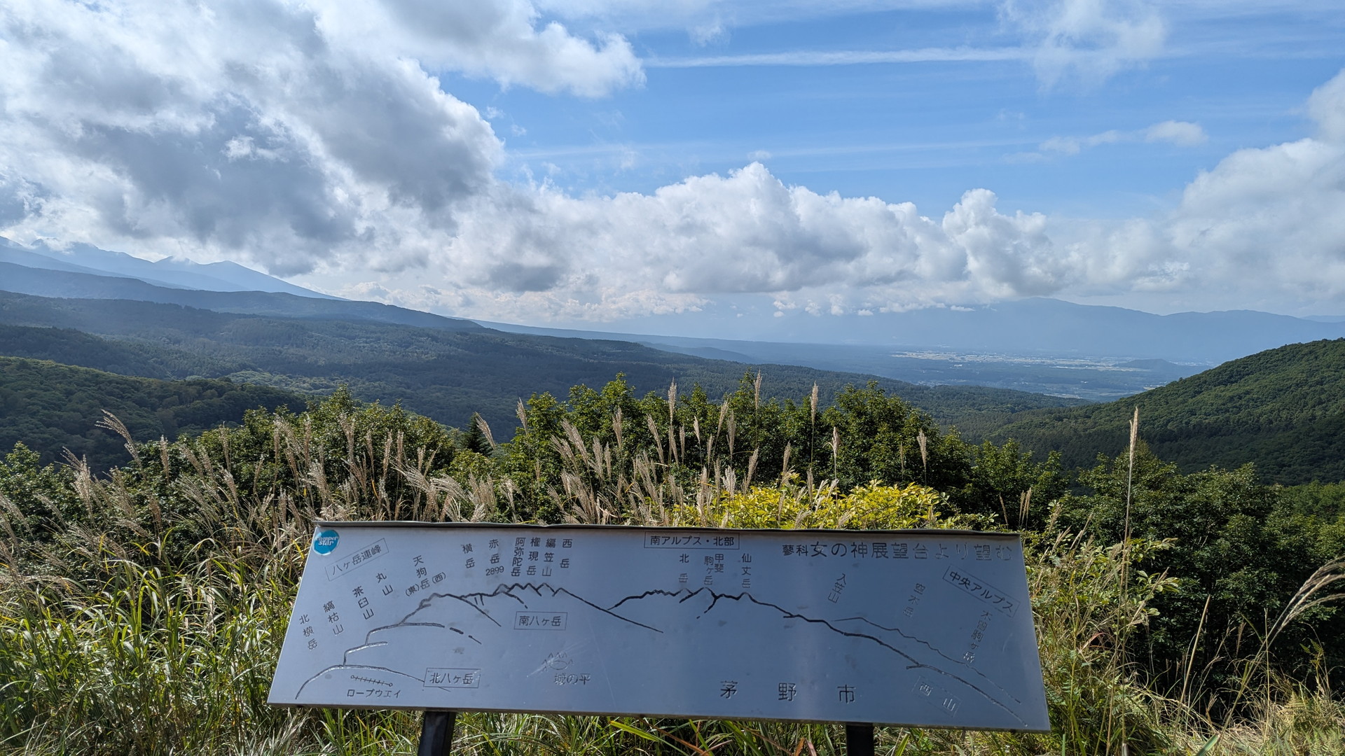 「女の神展望台(めのかみてんぼうだい)」は、標高1,770m地点に位置する絶景スポットで、南アルプス、中央アルプス、八ヶ岳連峰を一望できる人気のビューポイントです。