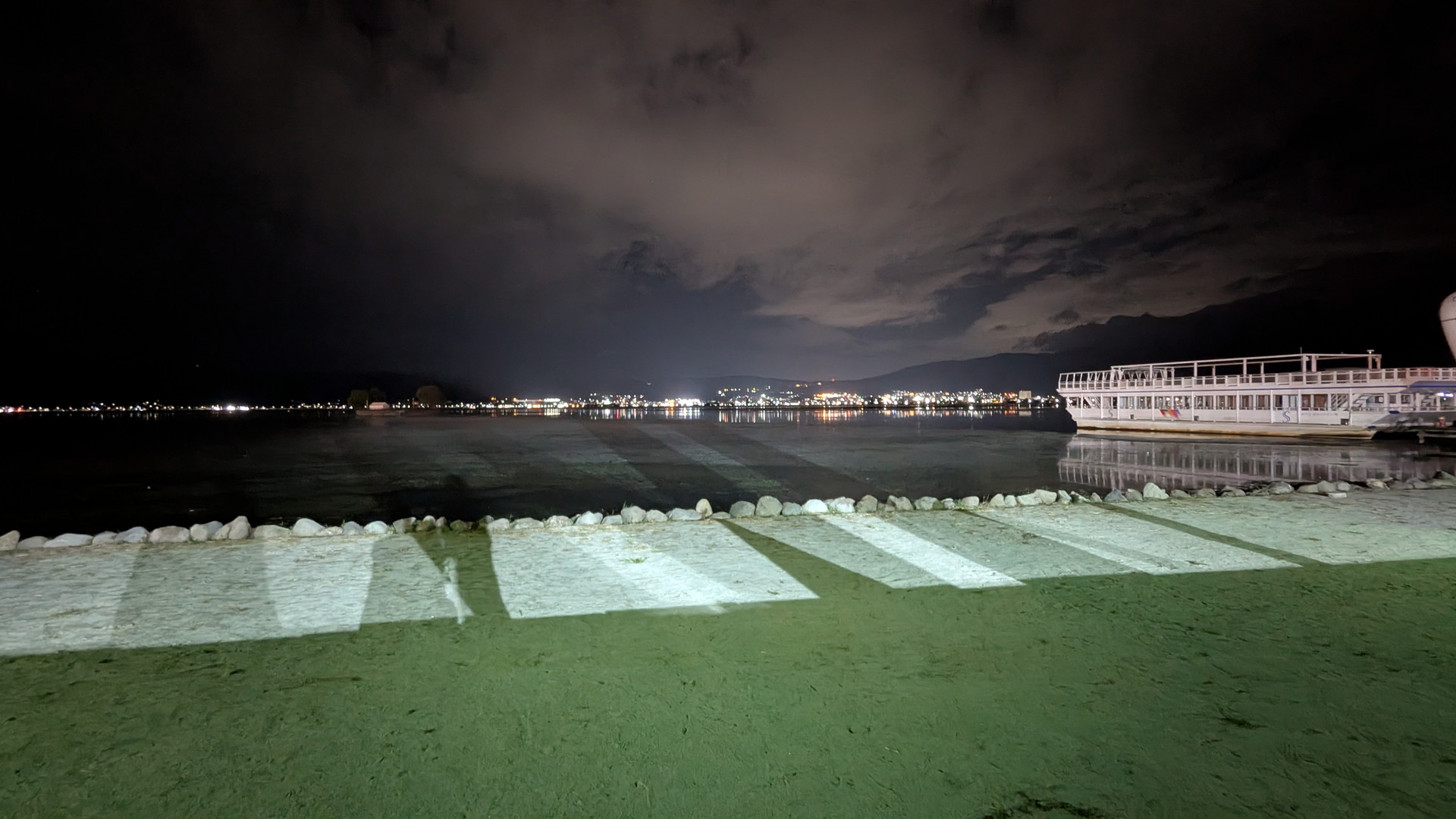 写真では今一つ伝わりませんが、対岸の灯りが湖面に反射してなかなか美しい眺めでした。