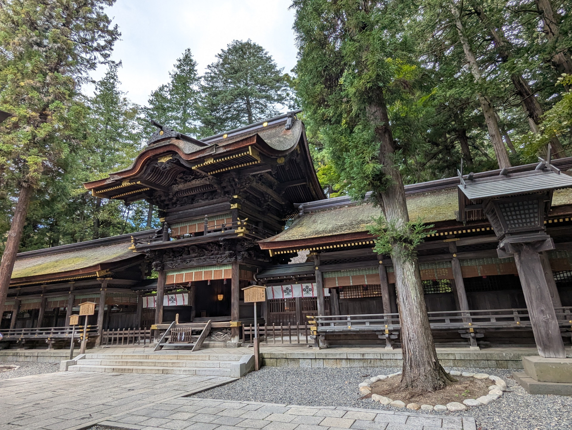「諏訪大社 下社春宮」は、下諏訪町の中心部に鎮座する古社で、春から秋にかけて神が鎮まるとされる場所です。上社に比べて穏やかで清らかな雰囲気が特徴で、参拝者は静けさの中で落ち着いた時間を過ごせます。