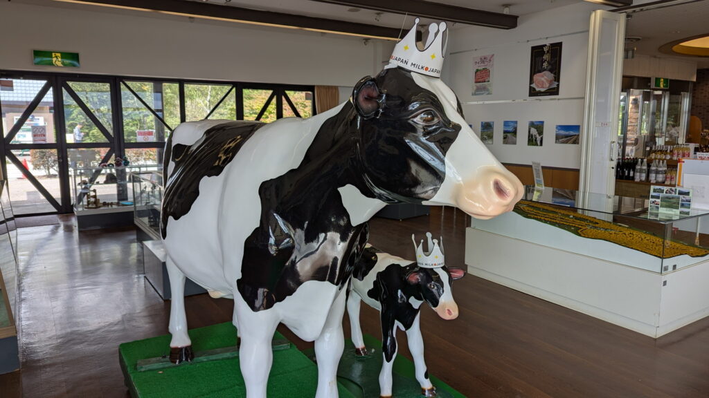 まきばの館にいる王冠をかぶった牛さん
