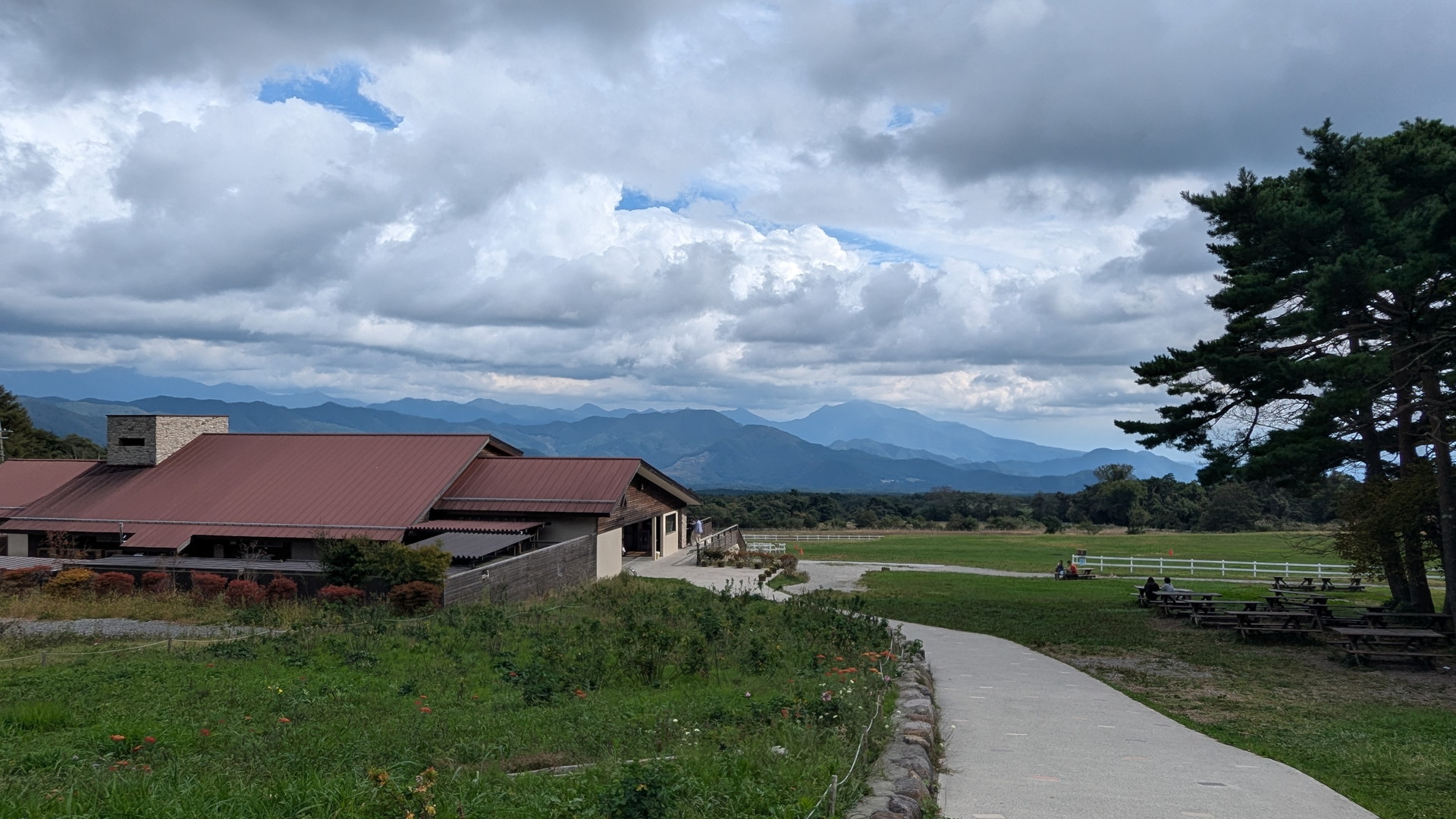 それでも、牧場の緑の向こうに広がる山々はいい眺めです。