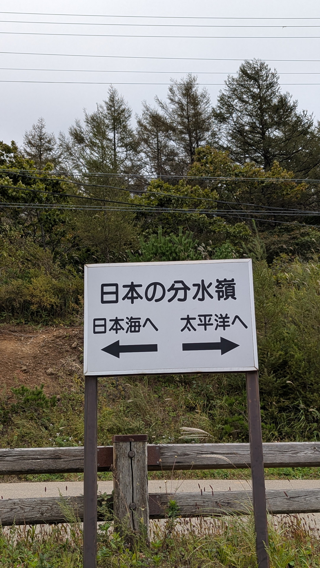 駐車場に分水嶺の標識がありました。