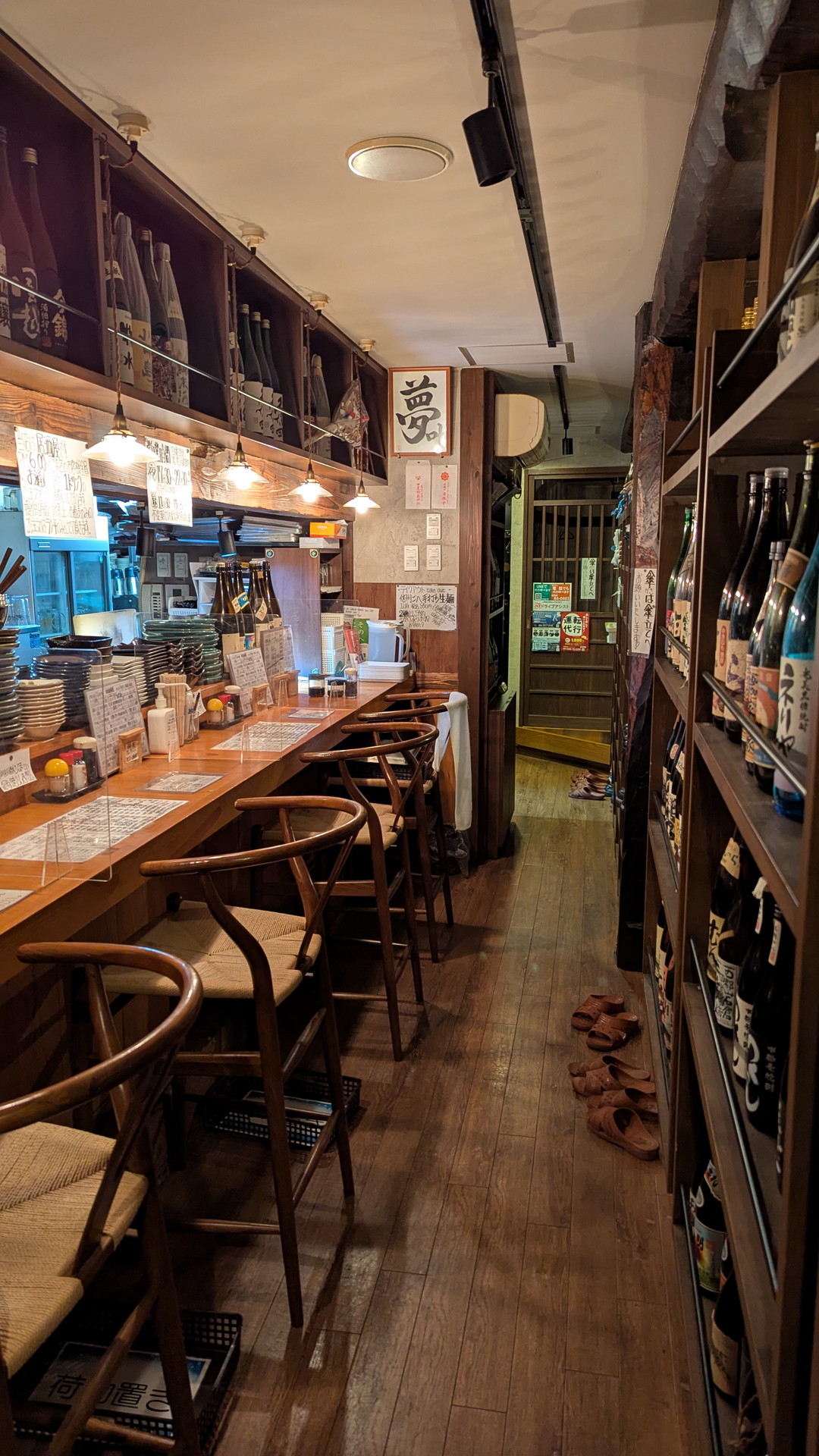 棚には酒瓶がずらっと並んでいます。