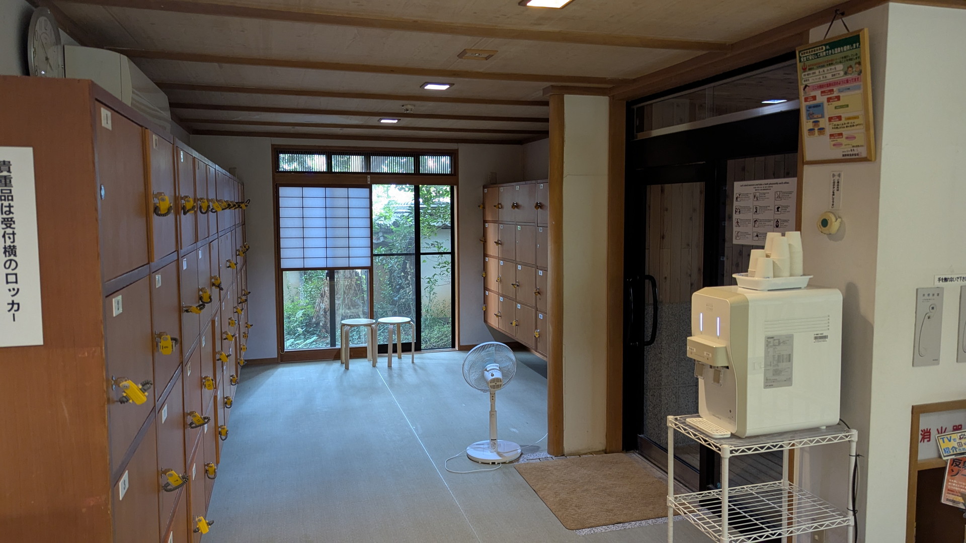 給水器は更衣室にコップで汲むタイプの冷水器があります。