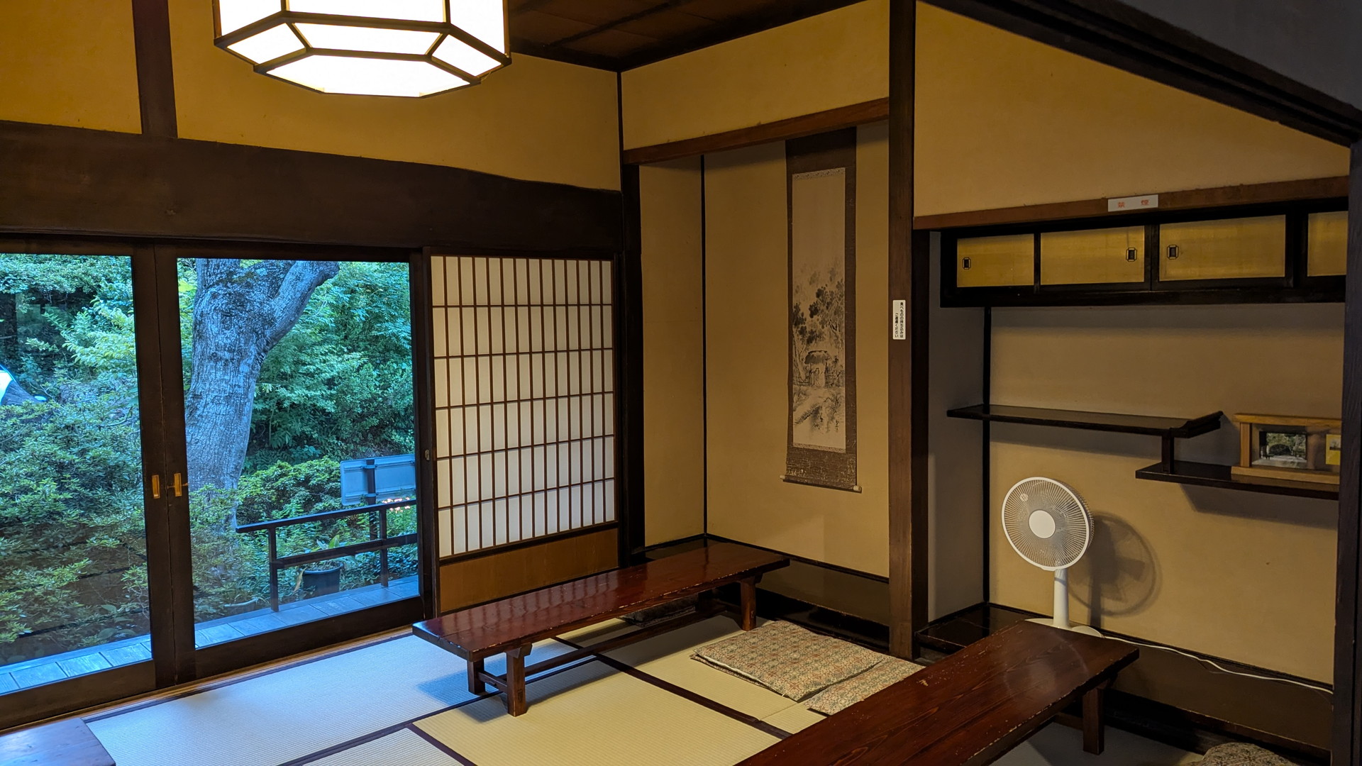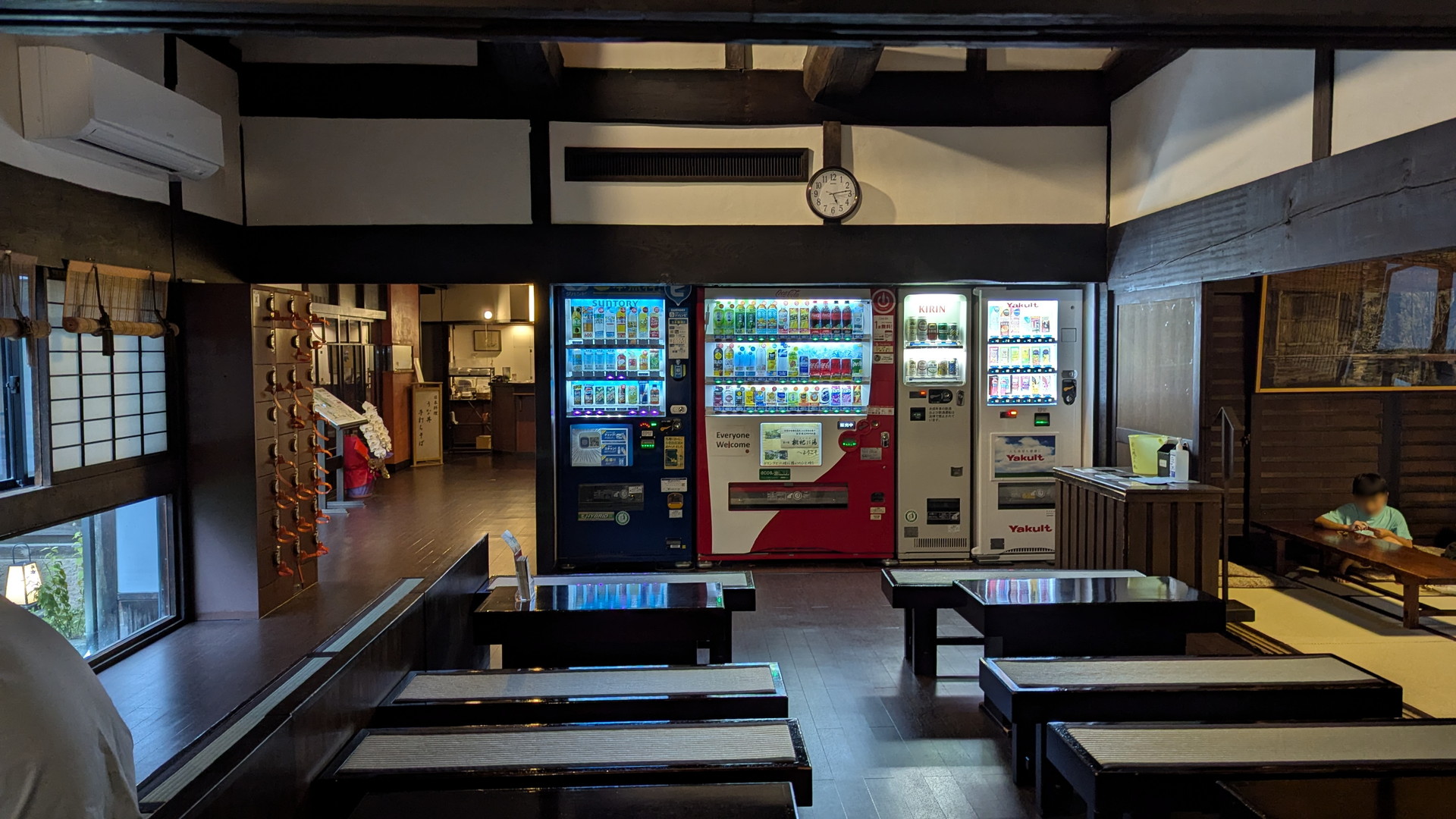 畳敷きにテーブルが並んでいます。