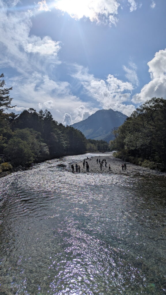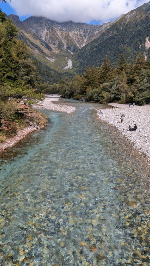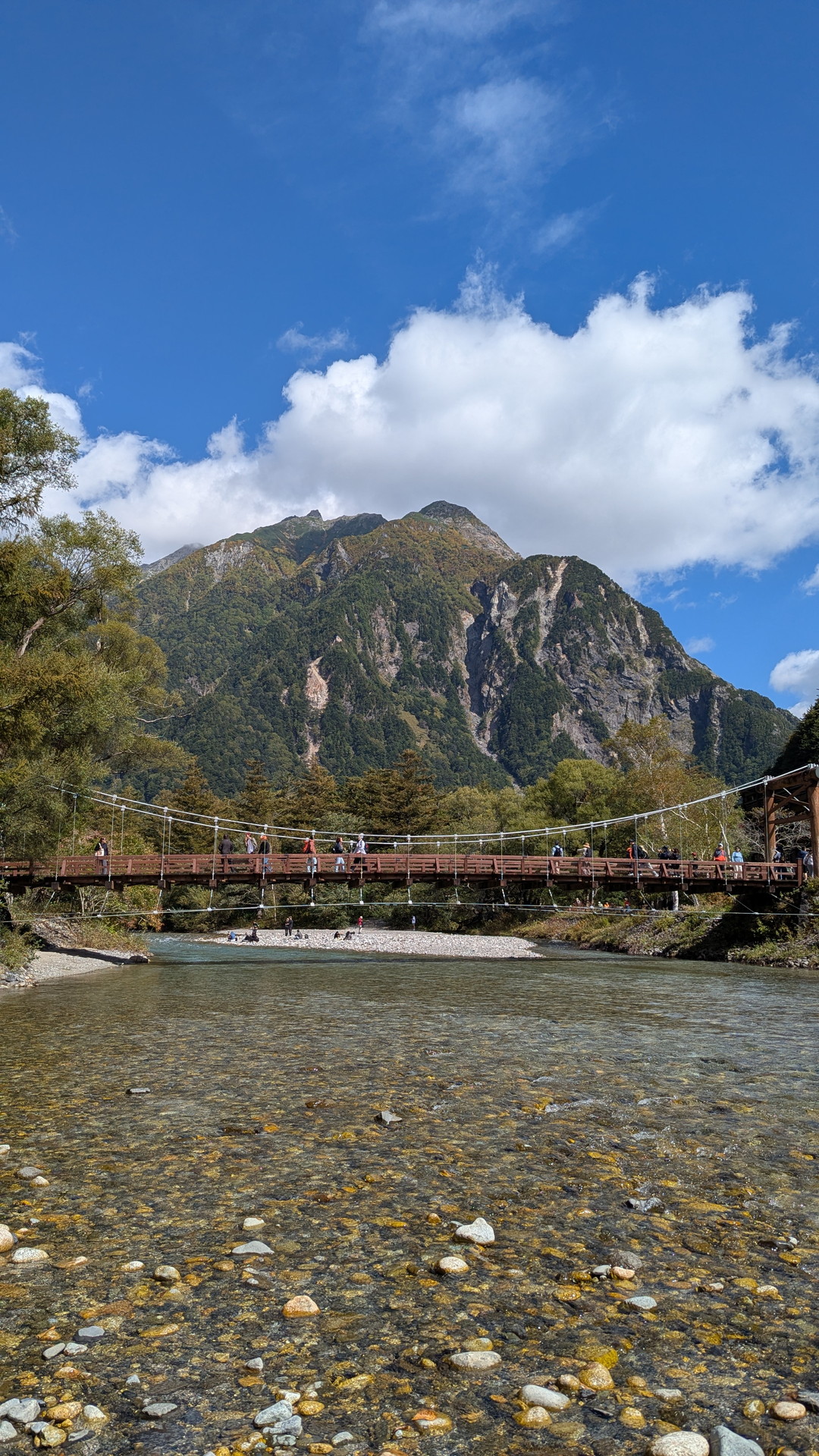 この河童橋は穂高連峰と梓川の清流を一望できる絶景スポットで、青く澄んだ川と雄大な山々の稜線が織りなす景色は、上高地を訪れる人々にとって必ず立ち寄りたい代表的な場所になっています。
