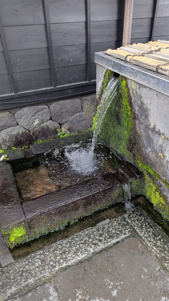 付近の「海禅寺」の境内に湧く水を明治14年に柳町の人々が木管を繋いで引いて簡易水道として利用されていました。