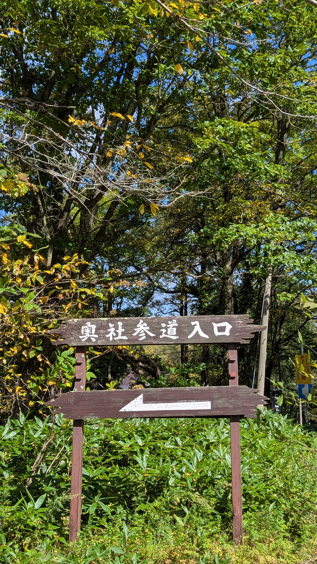 右の方に「奥社杉並木」という標柱がありますね。