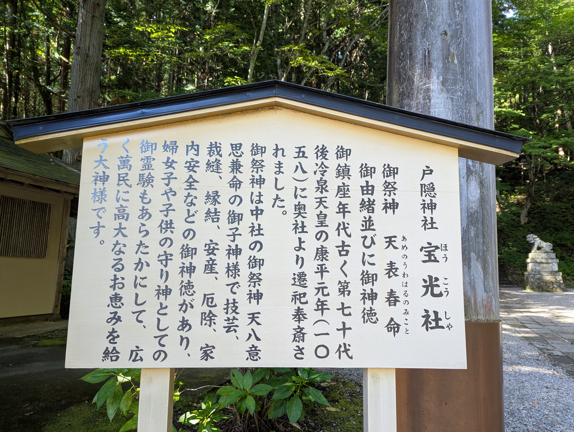 宝光社(ほうこうしゃ)は、長野市戸隠に鎮座する戸隠五社の最も麓に位置する社です。