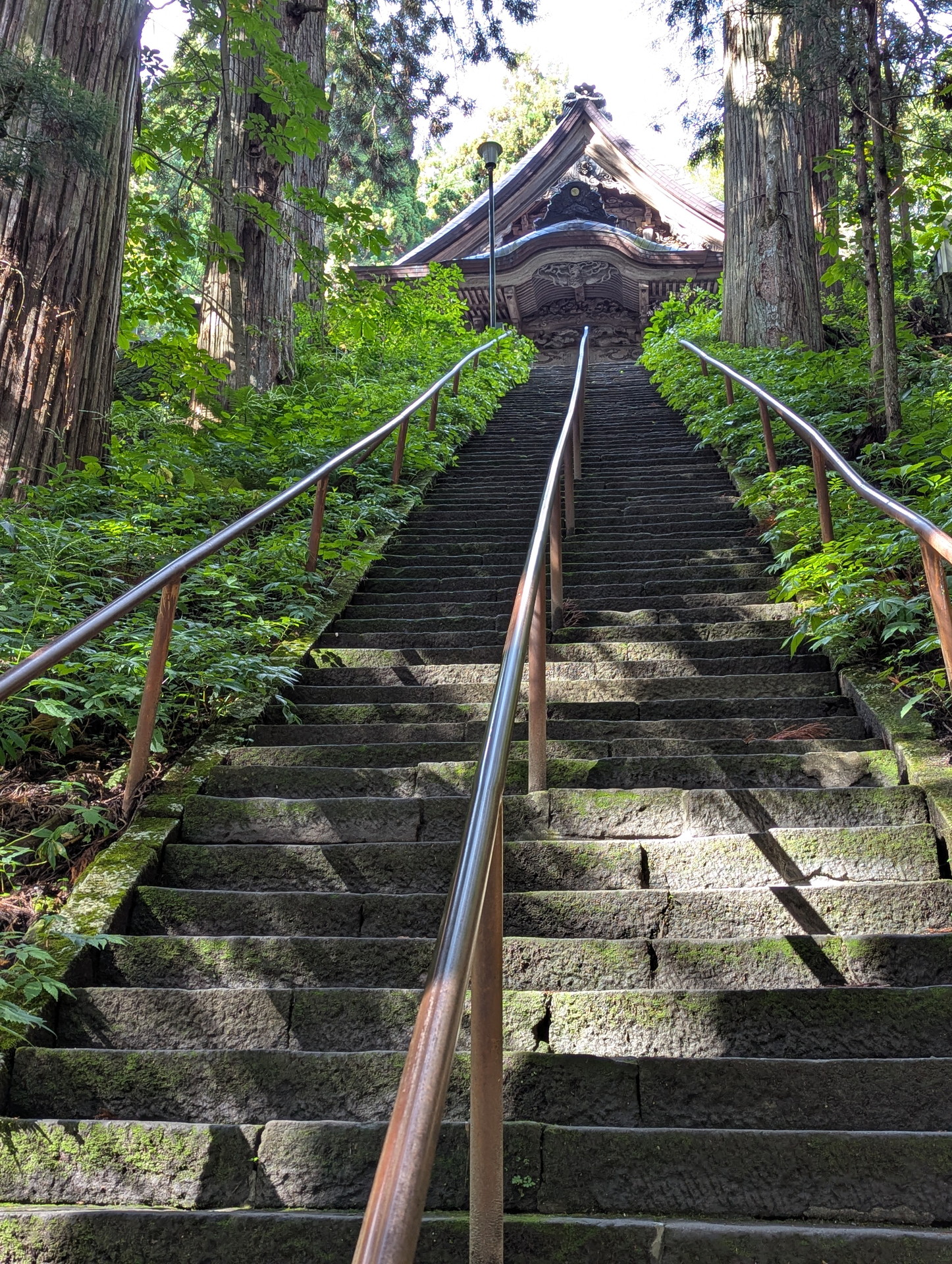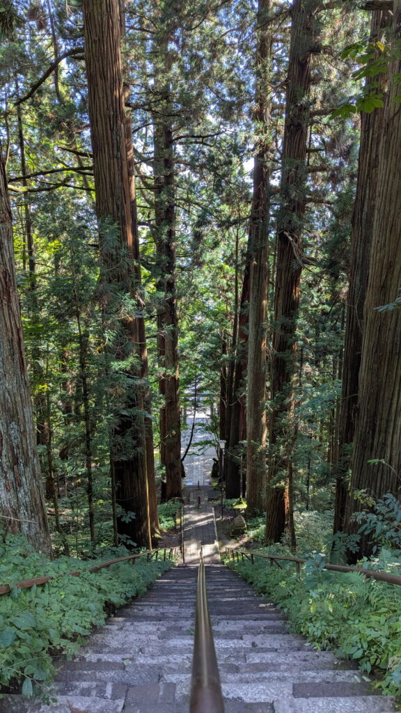 社殿へと続く参道は急な石段が約270段続き、登り切ると森に囲まれた朱塗りの社殿が現れます。石段を一歩一歩踏みしめながら進む道のりは、日常から神域へと心を切り替える大切な時間でもあり、参拝後には清々しい達成感を味わえます。