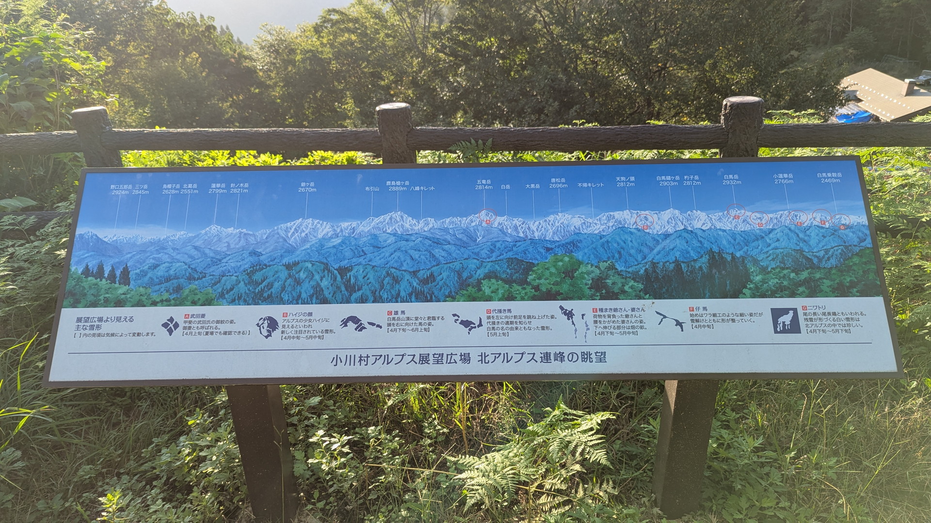 「小川村アルプス展望広場」は、北アルプス連峰の壮大なパノラマを眼前に収めることができる屈指の絶景スポットです。