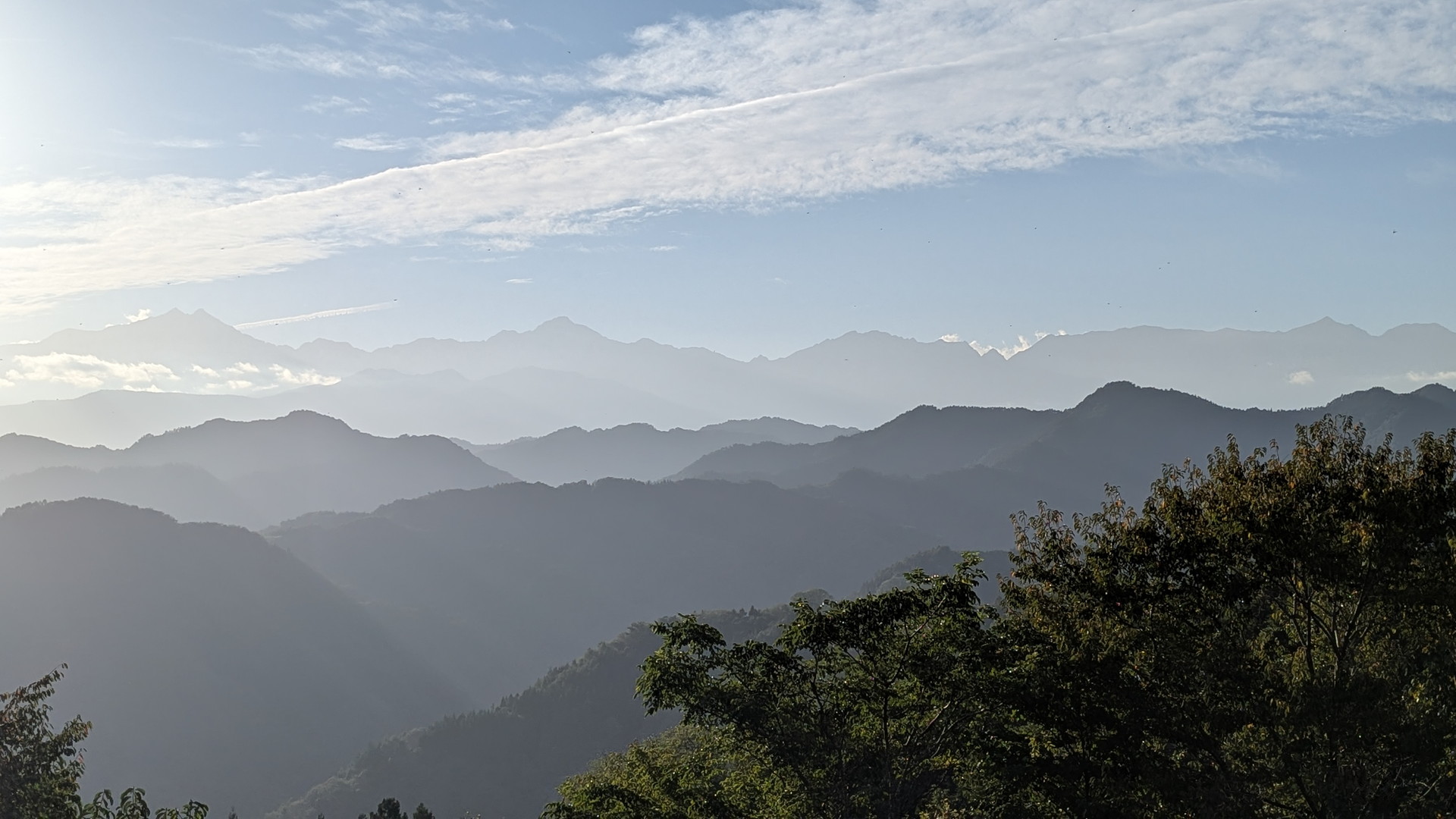 雲がかかっている&霞んでいるので、北アルプスの山々はそこまではっきりとは見えませんでした。